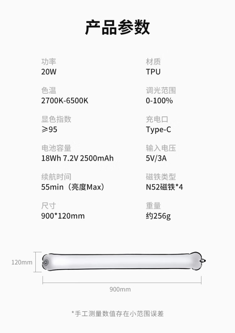 Ulanzi excellent basket UA20 20W gas column lamp dual-color temperature fill light inflatable stick lamp gas column lamp photography lamp magnetic suction mobile special handheld atmosphere light
