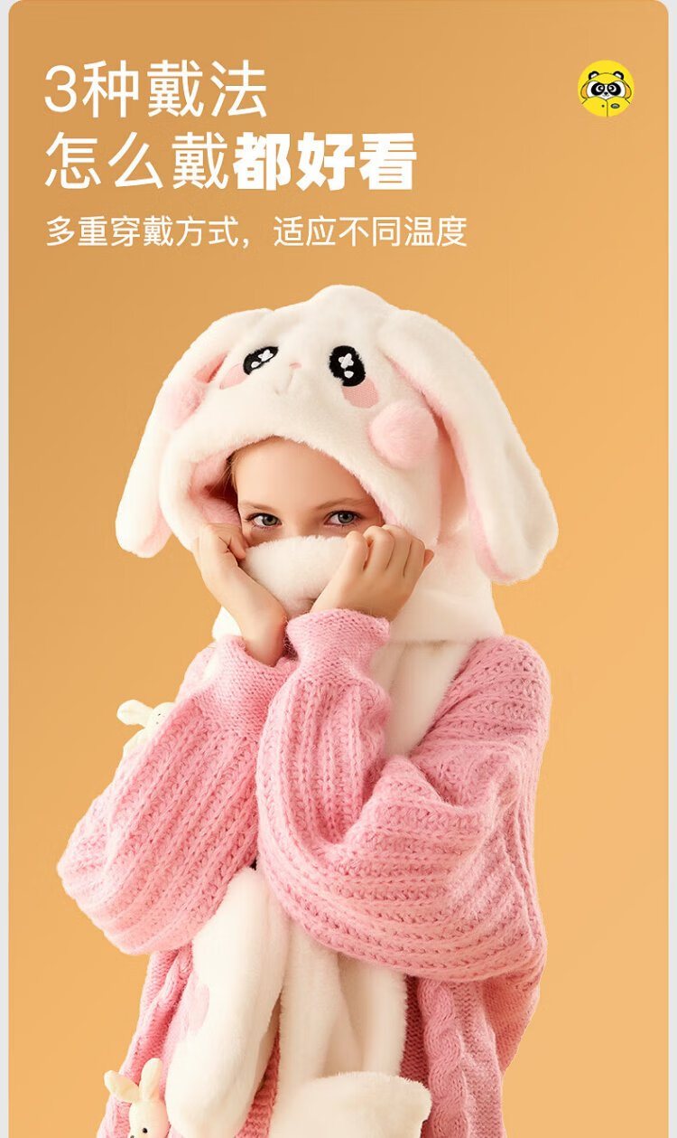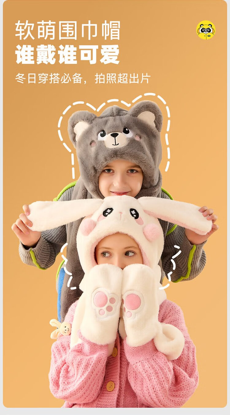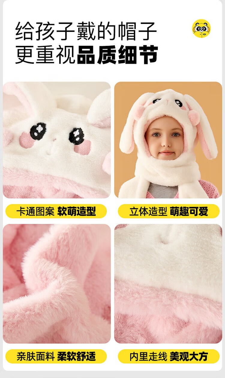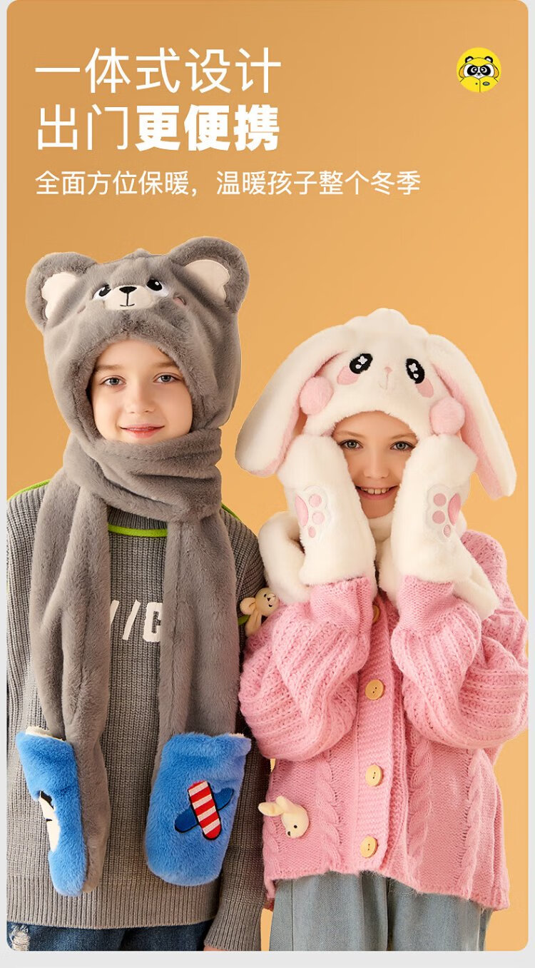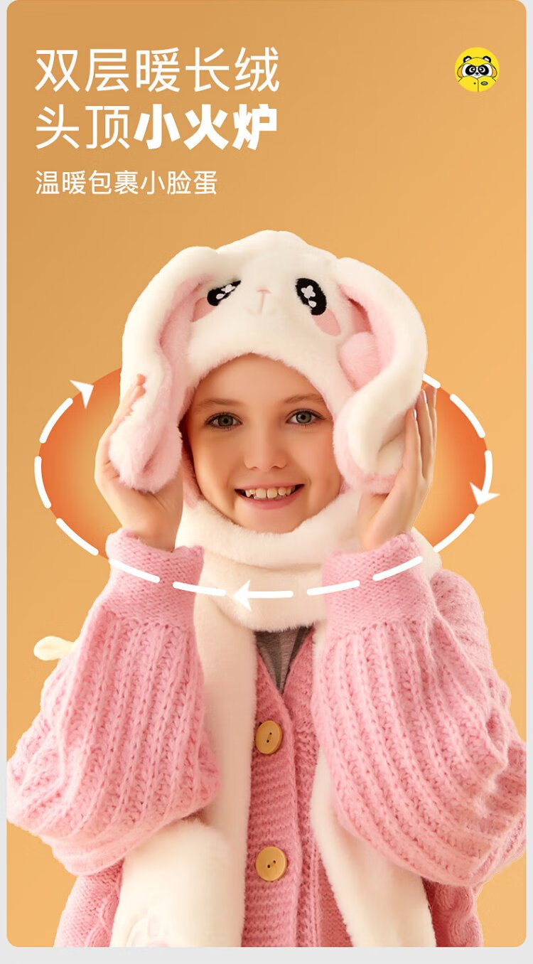 Mu Meng Children's Hat Autumn and Winter Scarf Hat All-in-one Boys and Girls Warm and Plush Baby Student Cartoon Hat Lop-eared Rabbit