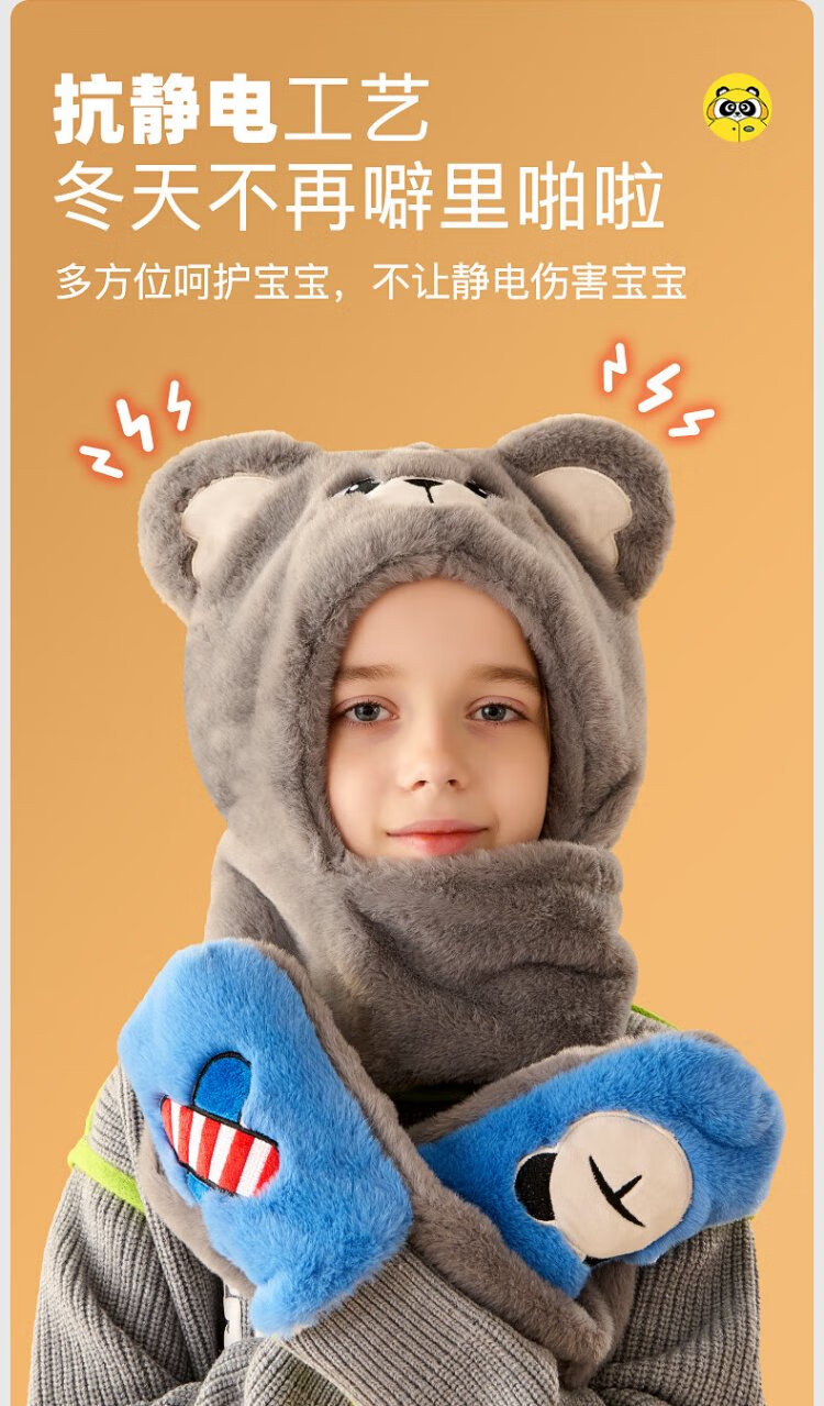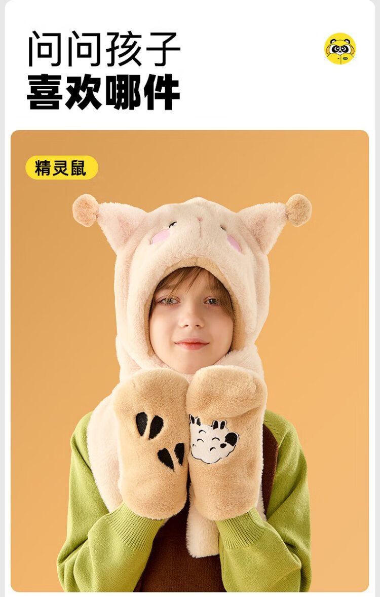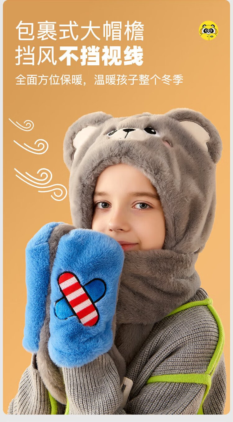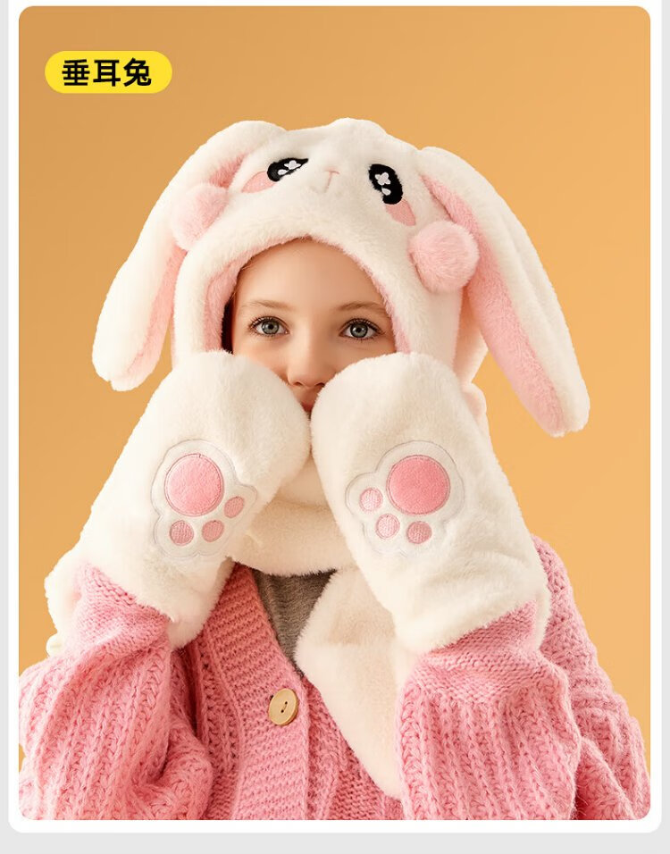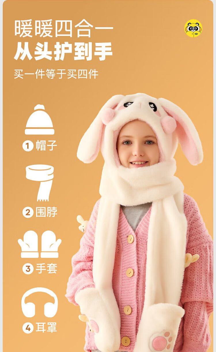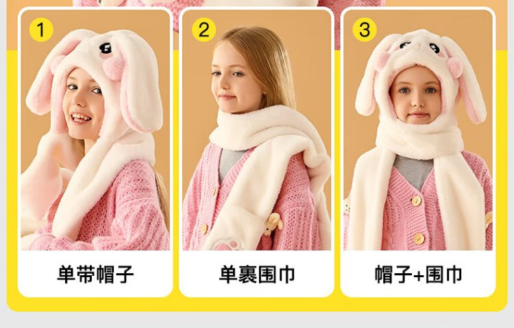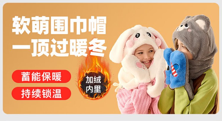 Mu Meng Children's Hat Autumn and Winter Scarf Hat All-in-one Boys and Girls Warm and Plush Baby Student Cartoon Hat Lop-eared Rabbit