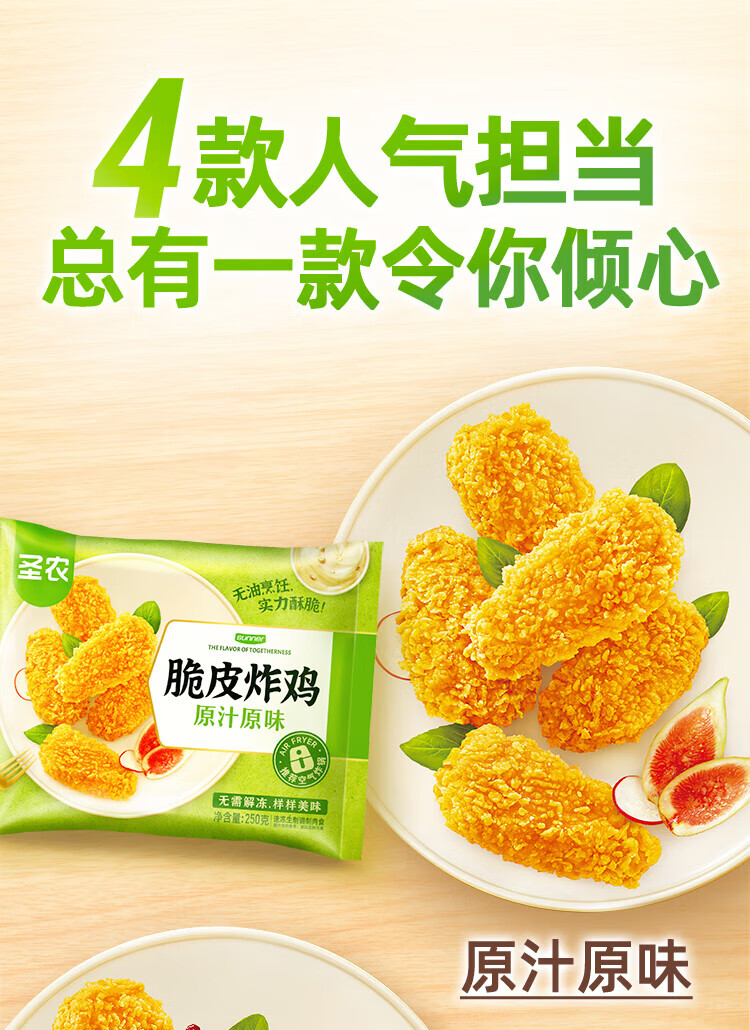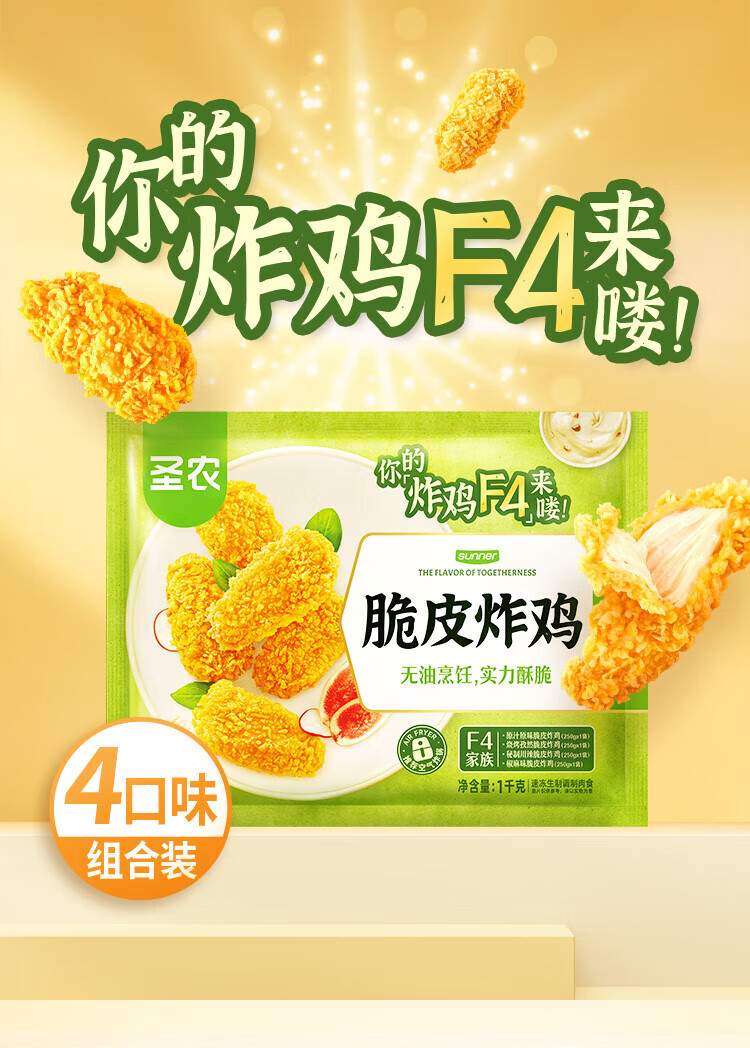 Shennong Crispy Fried Chicken F4, net weight 250g*4 packs, frozen, four flavor combinations, breaded fried chicken snacks