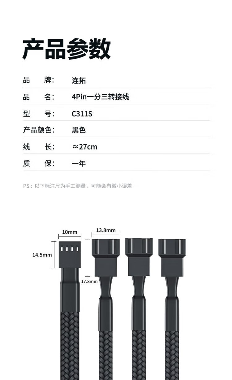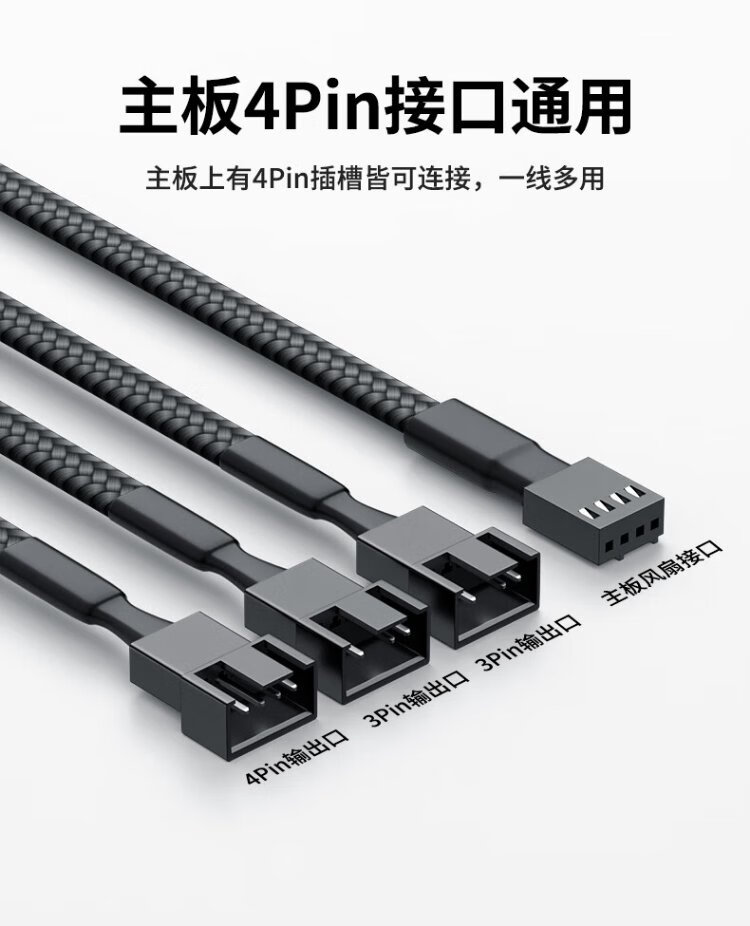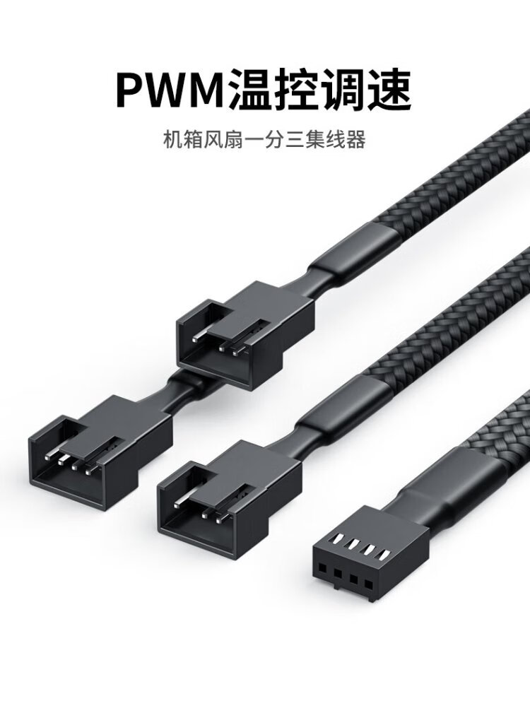 Liantuo 4Pin chassis host fan extension cable, one-to-three desktop computer motherboard 3Pin hub HUB splitter, one-to-three transfer wiring, supports PWM intelligent temperature control