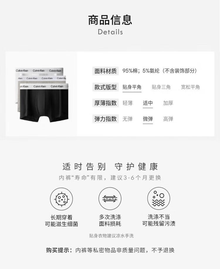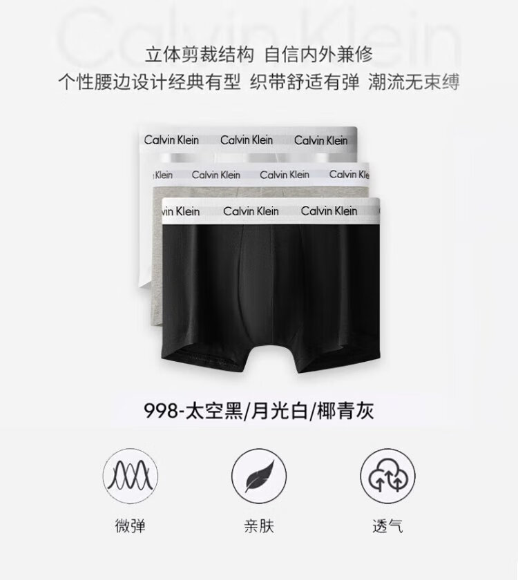 Calvin Klein underwear men's ck three-pack jacquard cotton anti-pinch low-waist boxer briefs U2664G M gift