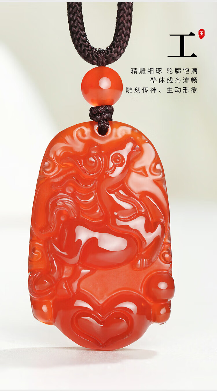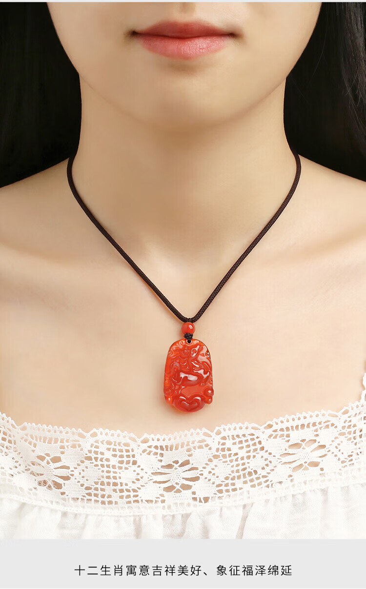 Phoenix Jewelry Red Agate Zodiac Horse Pendant Men's and Women's Year of Life Amulet Jade Necklace Birthday Gift
