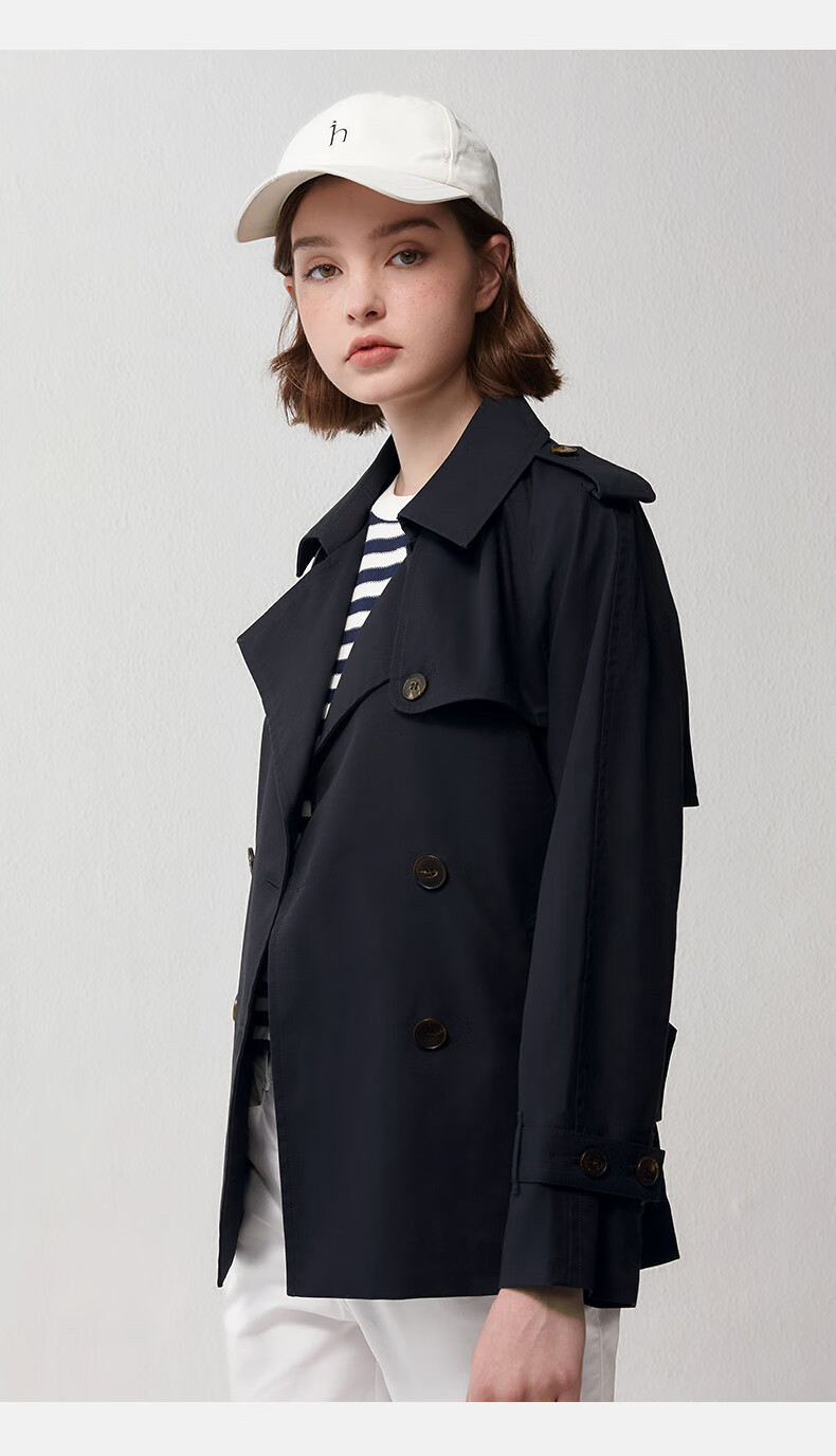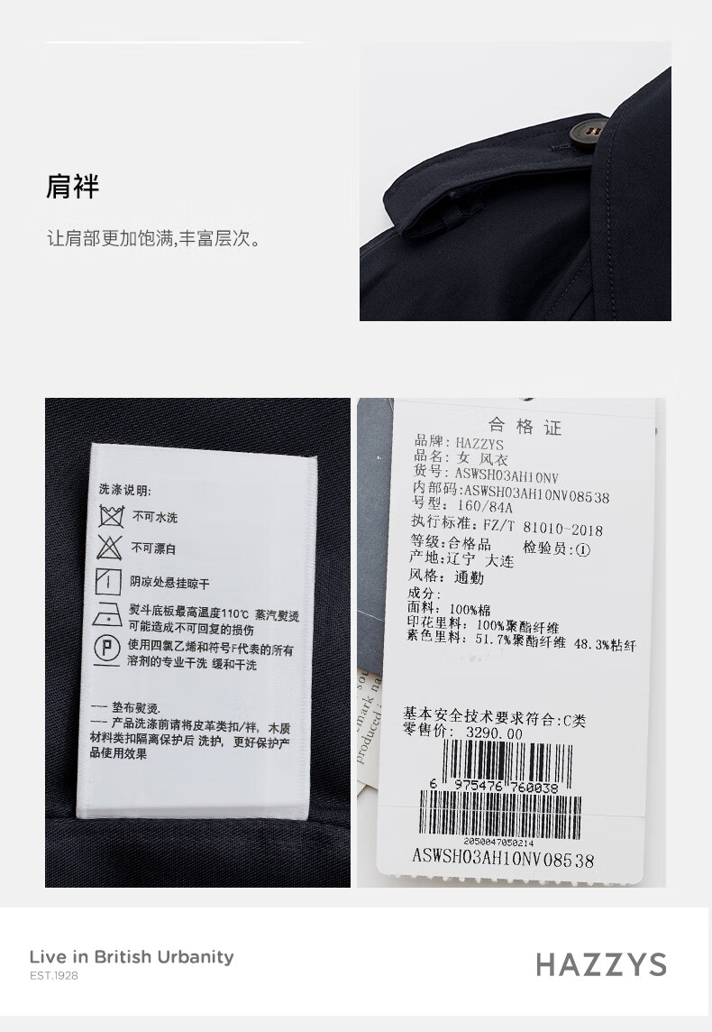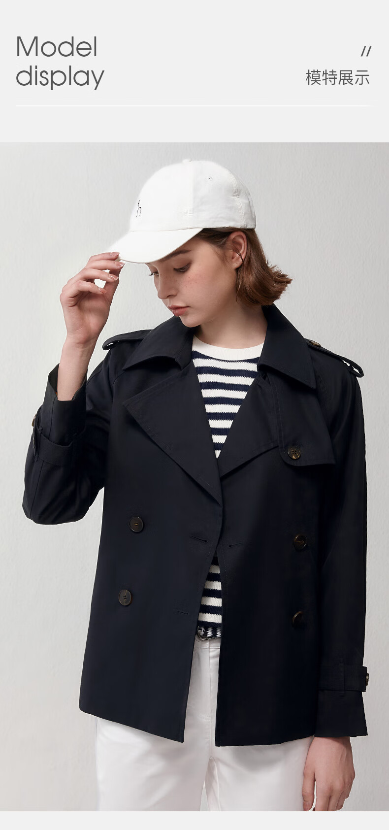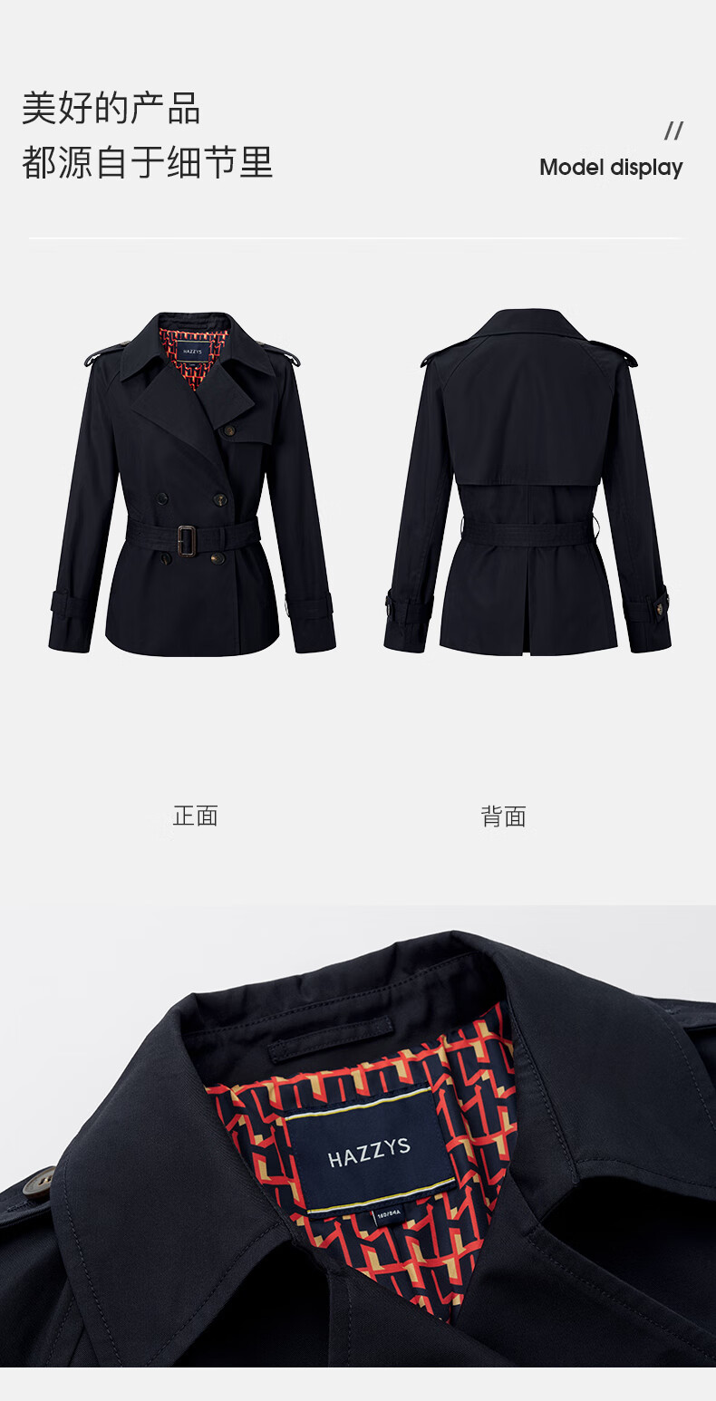 HAZZYS Women's Short Style Simple Slim Waist Windbreaker ASWSH03AH10 Navy Blue NV 160/84A38