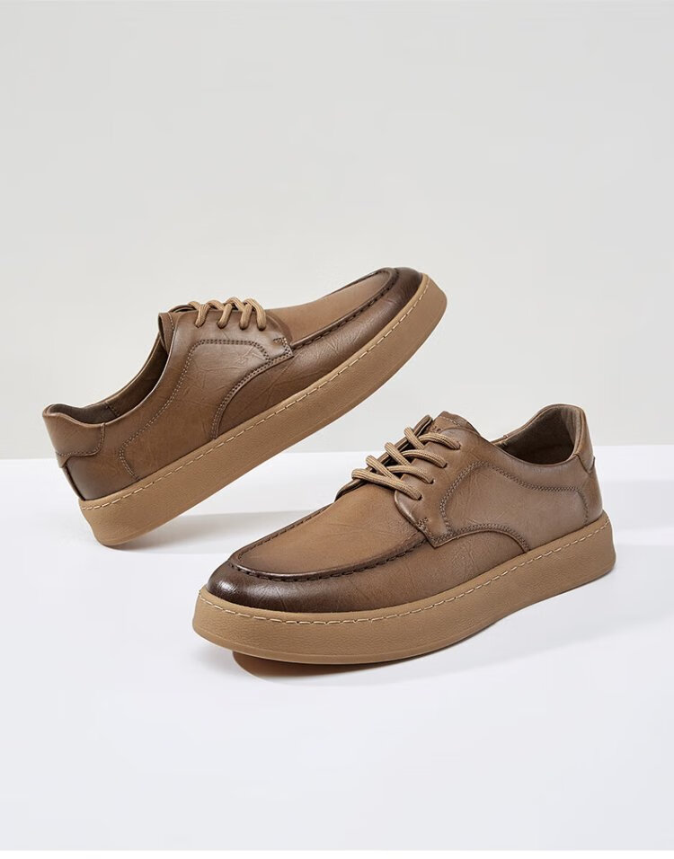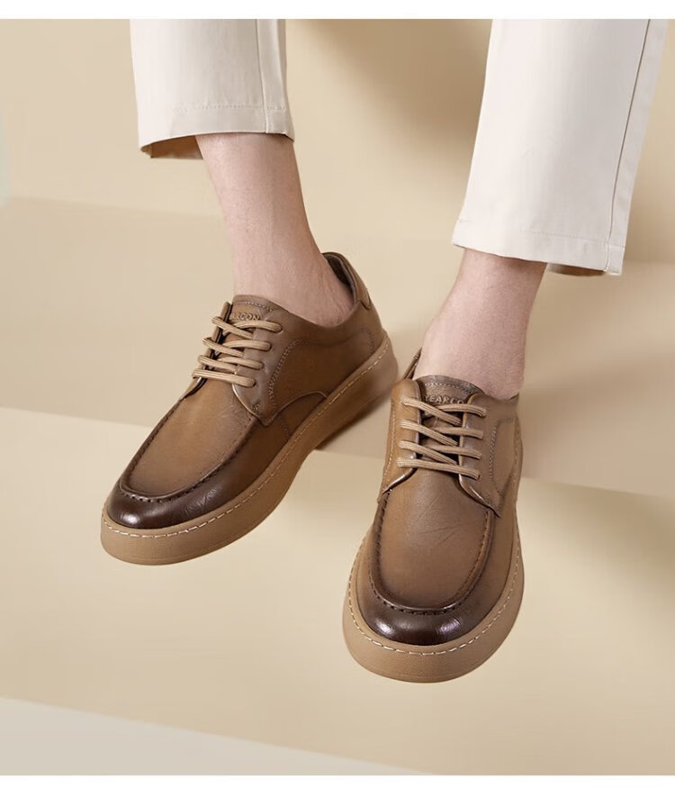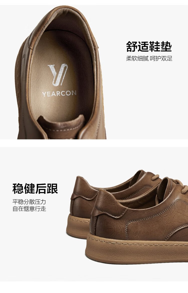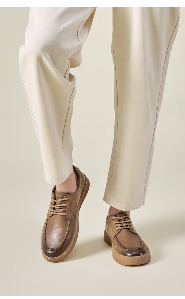 Yierkan leather shoes men's business casual shoes simple lace-up British gentleman soft-soled flat shoes 96835W yellow brown 41