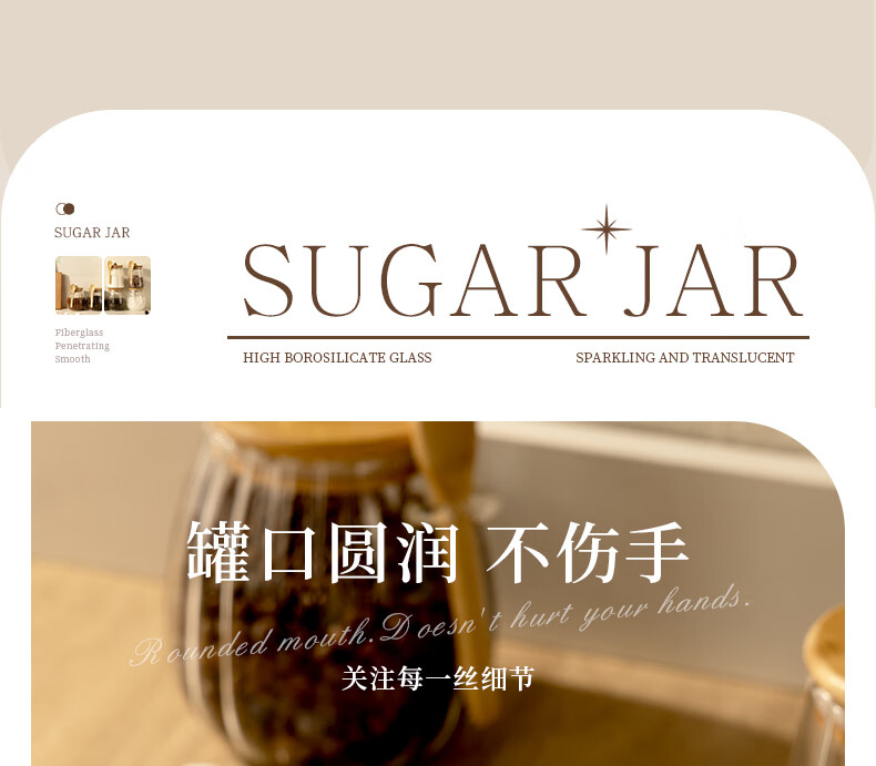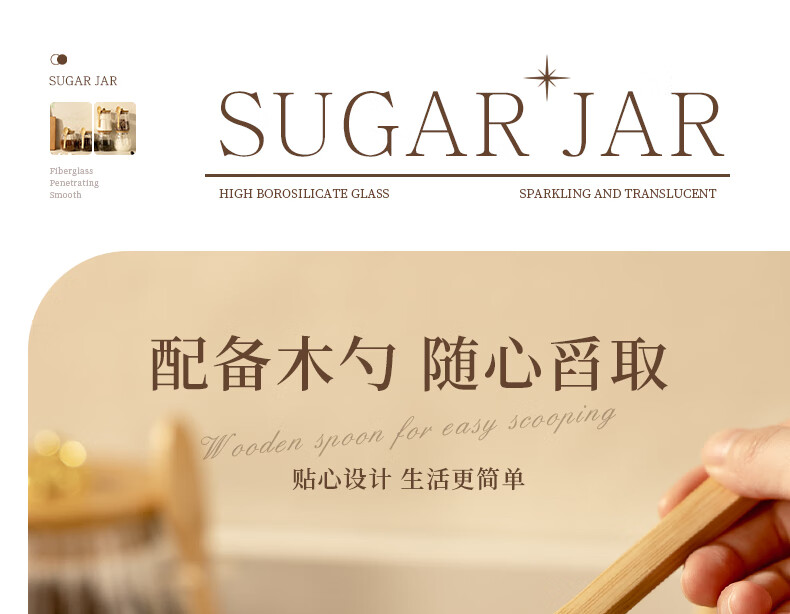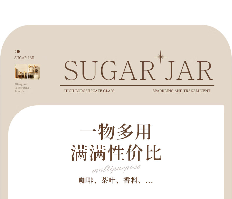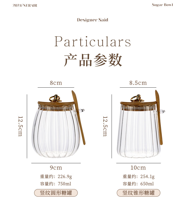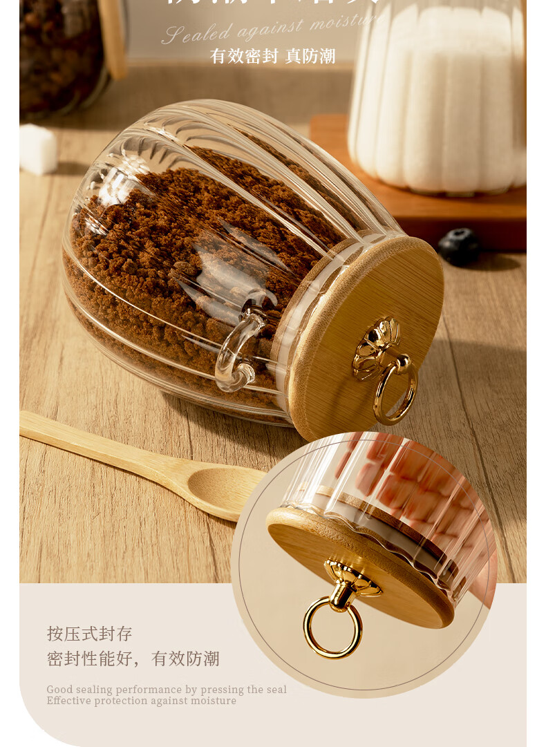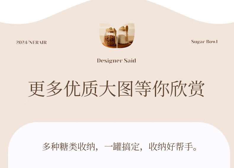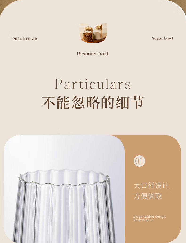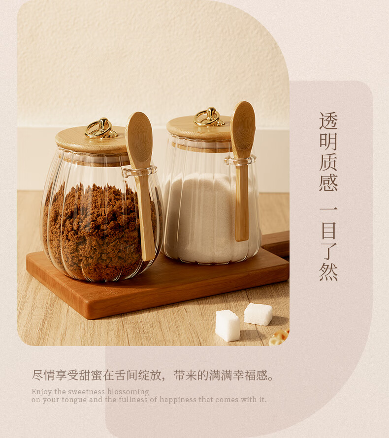 Newair sugar jar white sugar storage jar kitchen sugar jar brown sugar rock sugar household storage sealed high-value glass jar