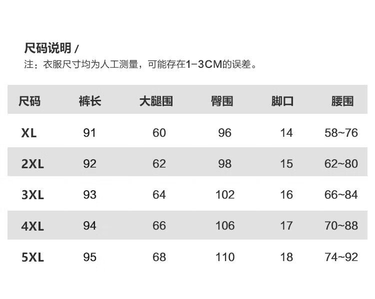Outseam (cm) 99 cm 101.5 cm 104 cm 106.5 cm 109 cm