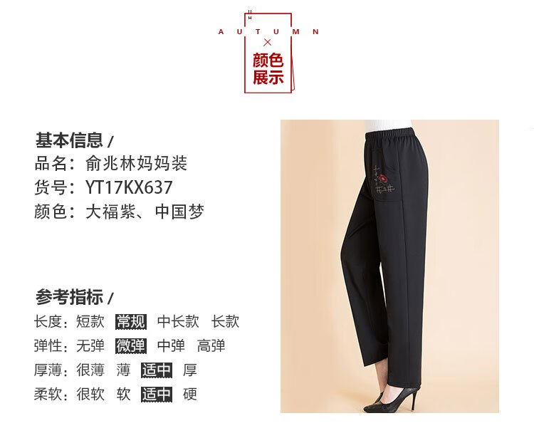 Yu Zhaolin Mom's Pants Spring and Autumn Casual Pants Middle-aged and Elderly Women's Straight Leg Granny Pants Y23KK2624