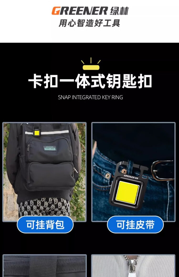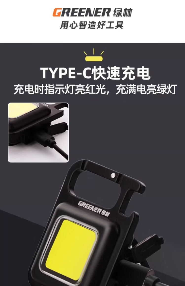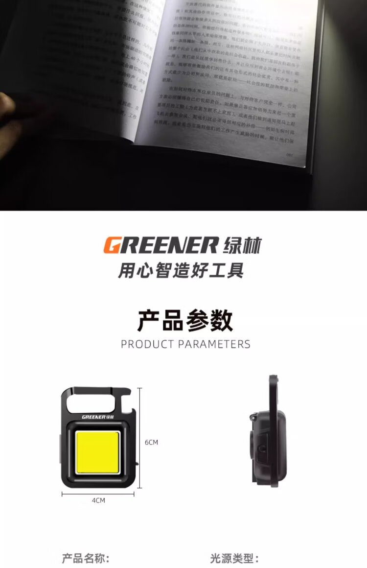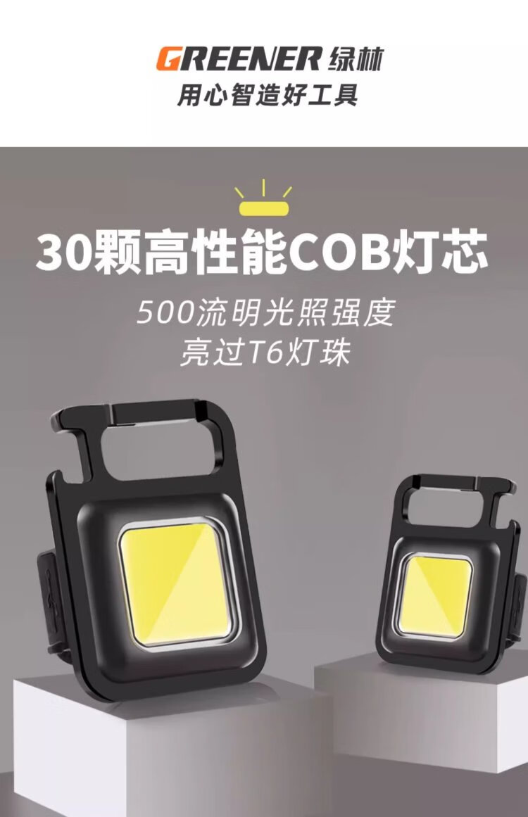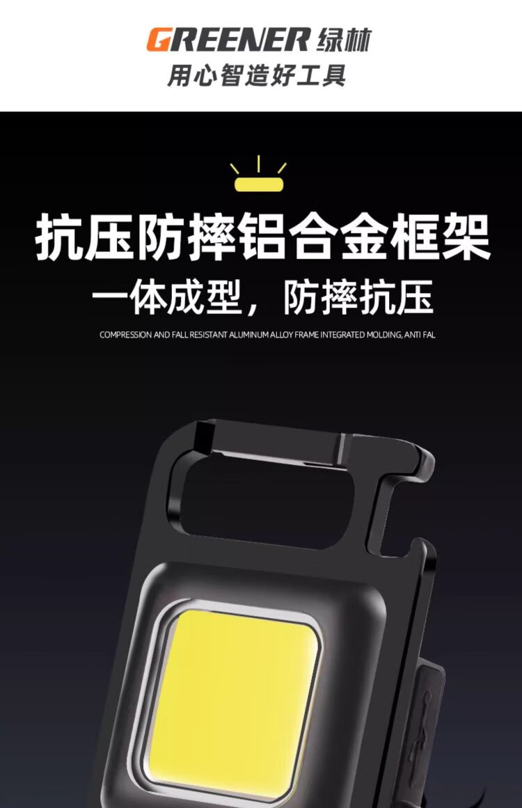 GREENER strong light flashlight household small mini keychain light emergency light magnetic work light auto repair light floodlight