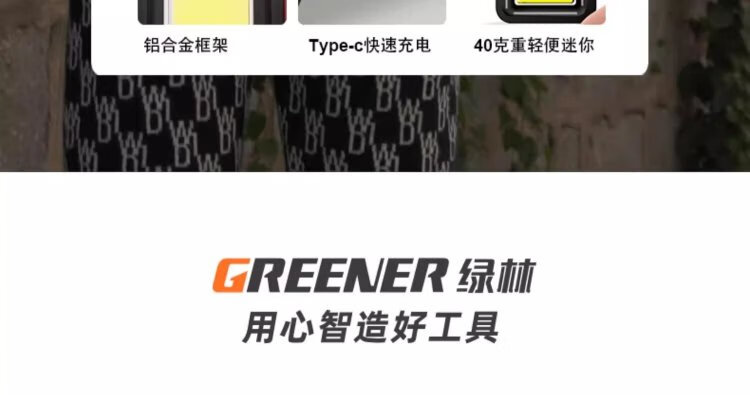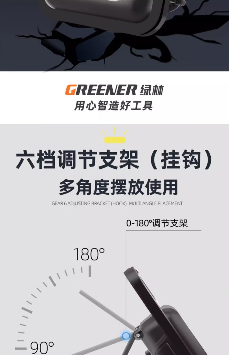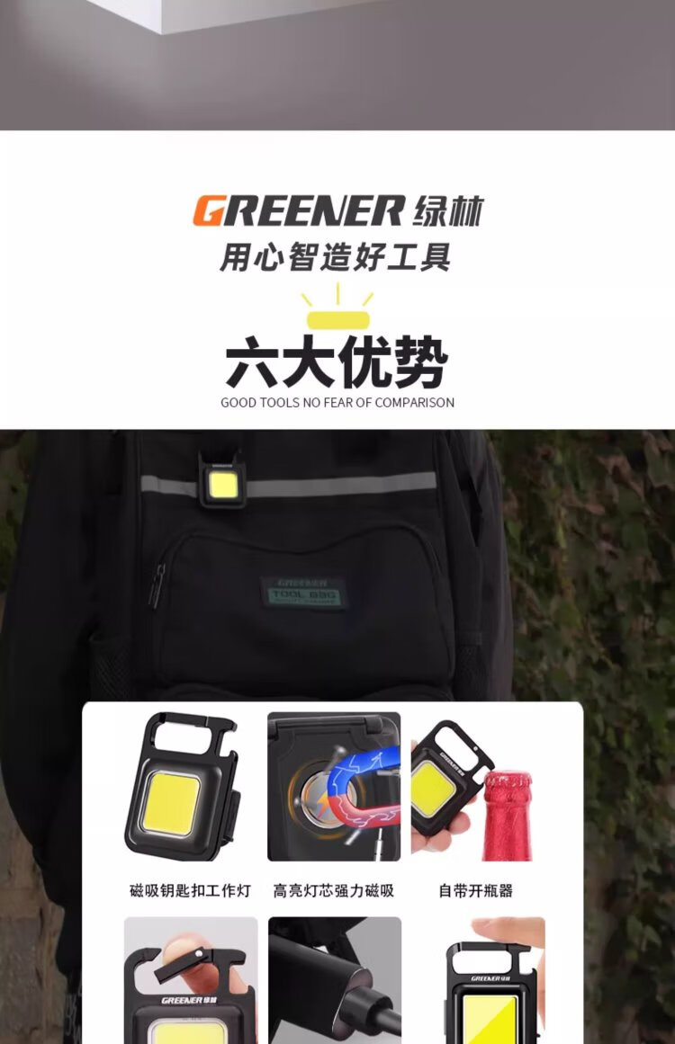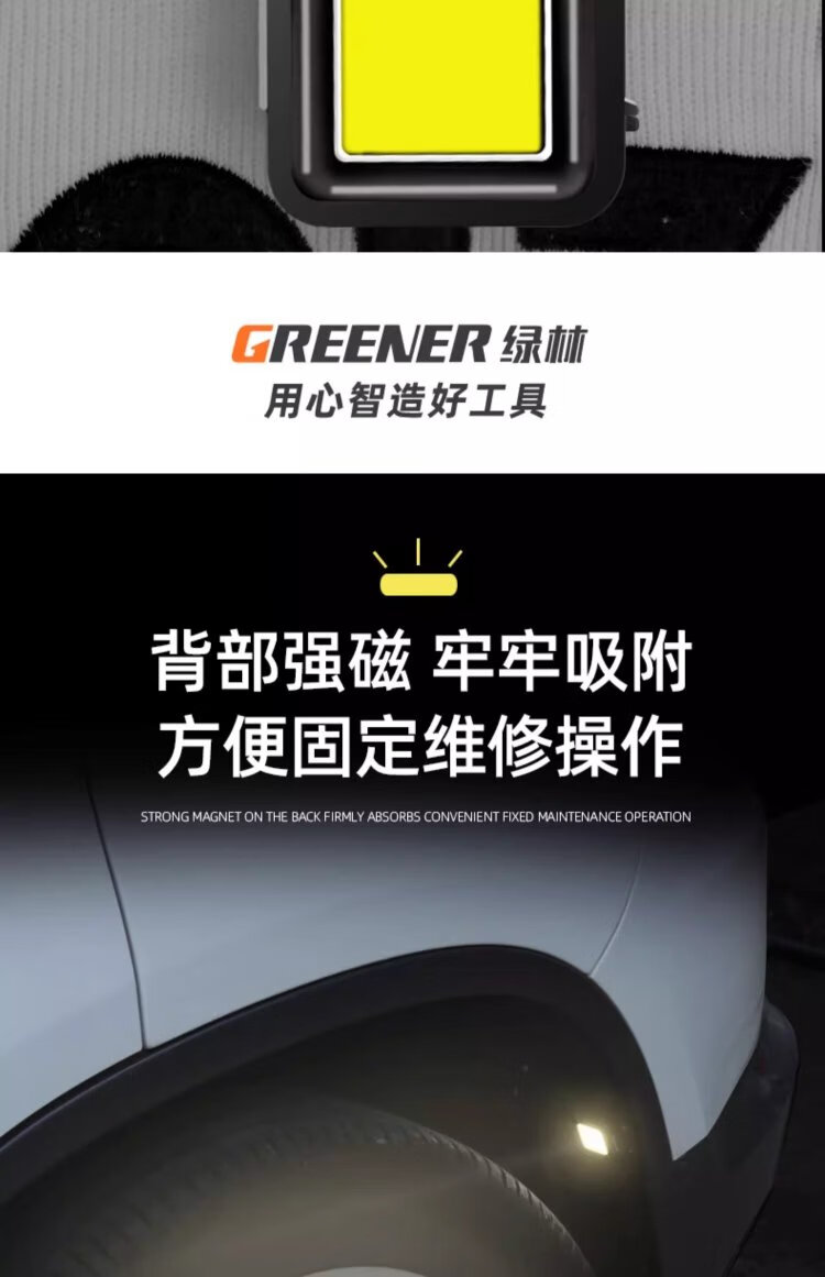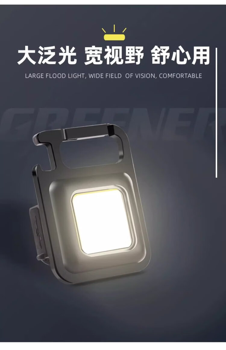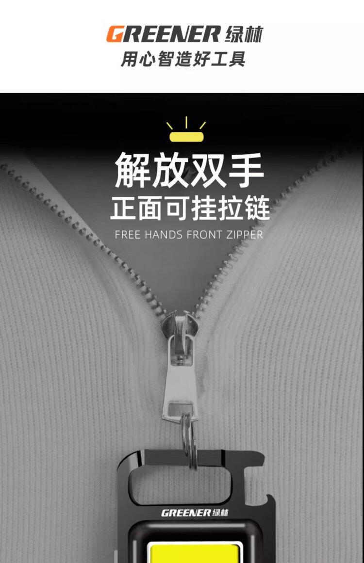 GREENER strong light flashlight household small mini keychain light emergency light magnetic work light auto repair light floodlight