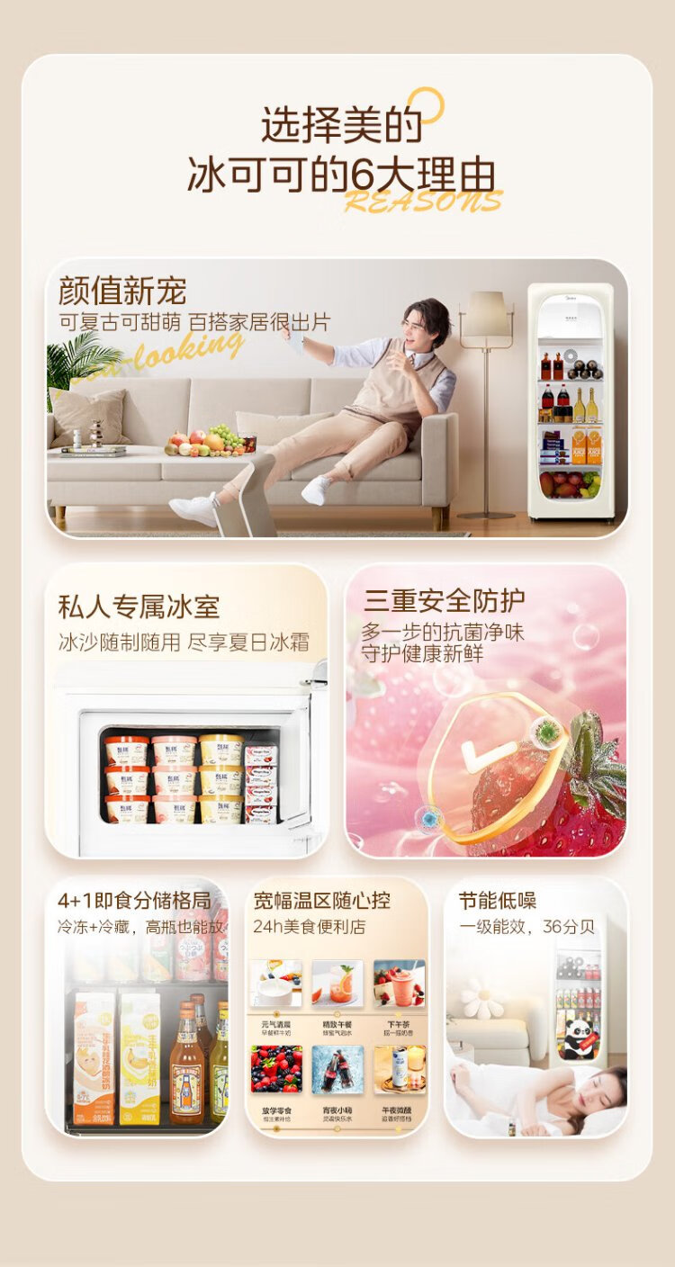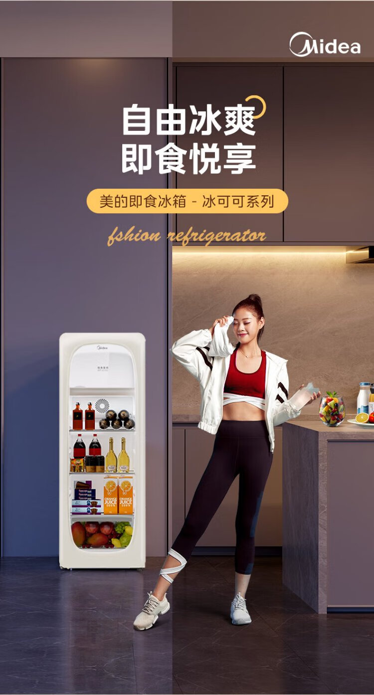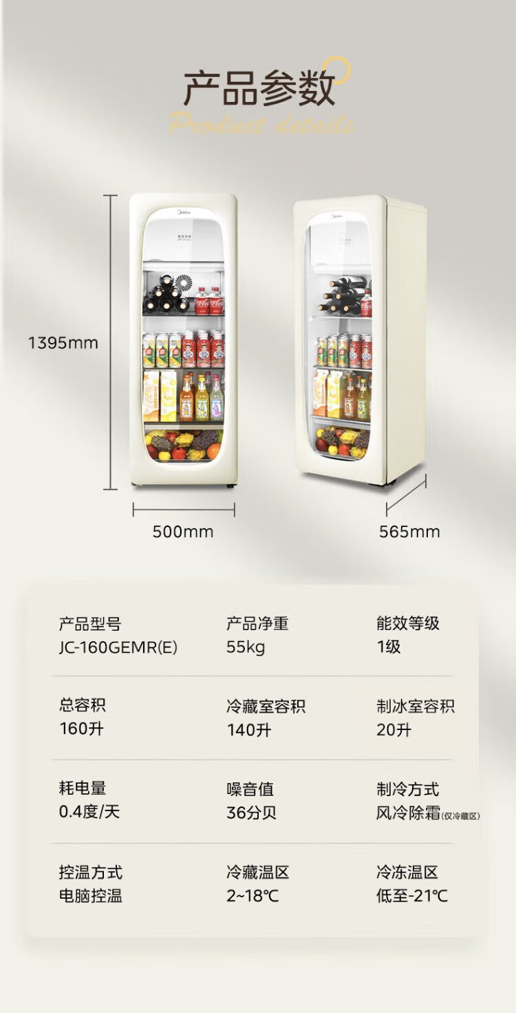 Midea cute small refrigerator 160 liters for home living room ice bar office dual temperature refrigeration freezer tea beverage fruit small vertical JC-160GEMR(E)