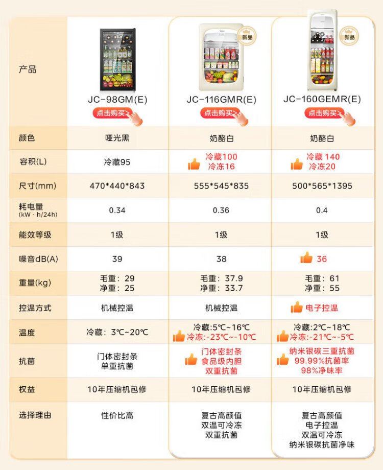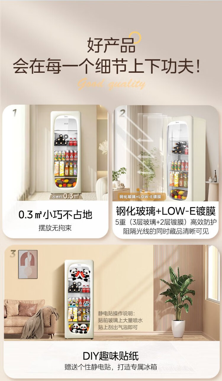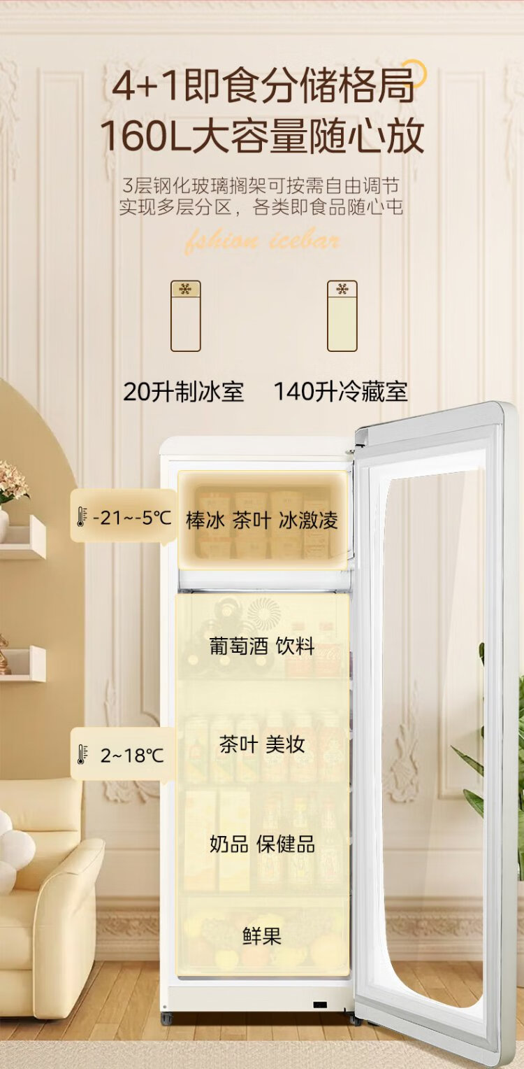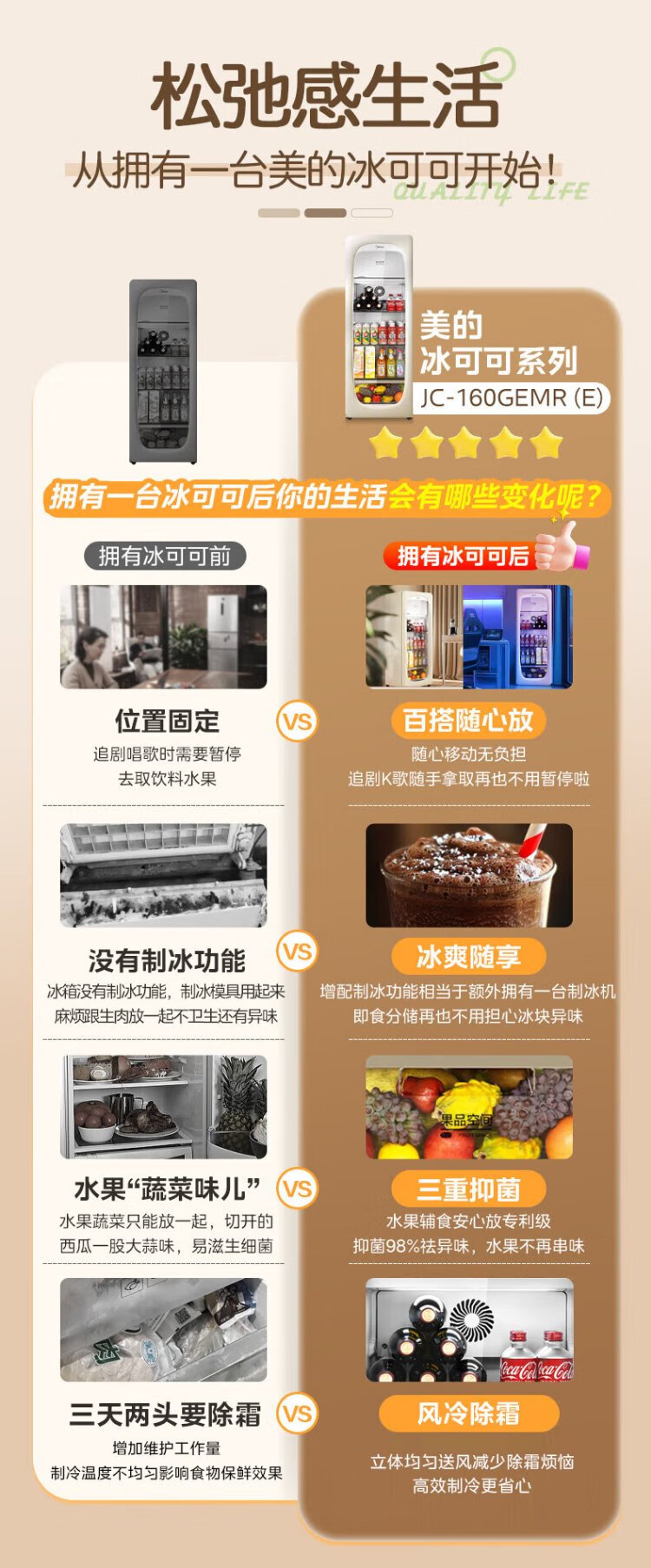 Midea cute small refrigerator 160 liters for home living room ice bar office dual temperature refrigeration freezer tea beverage fruit small vertical JC-160GEMR(E)