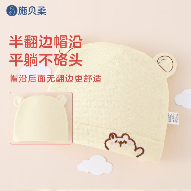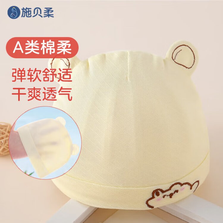 Shibei Rou baby hat summer baby newborn boneless fetal hat toddler protective fontanel hat bear hat 0-3 months cotton thin section