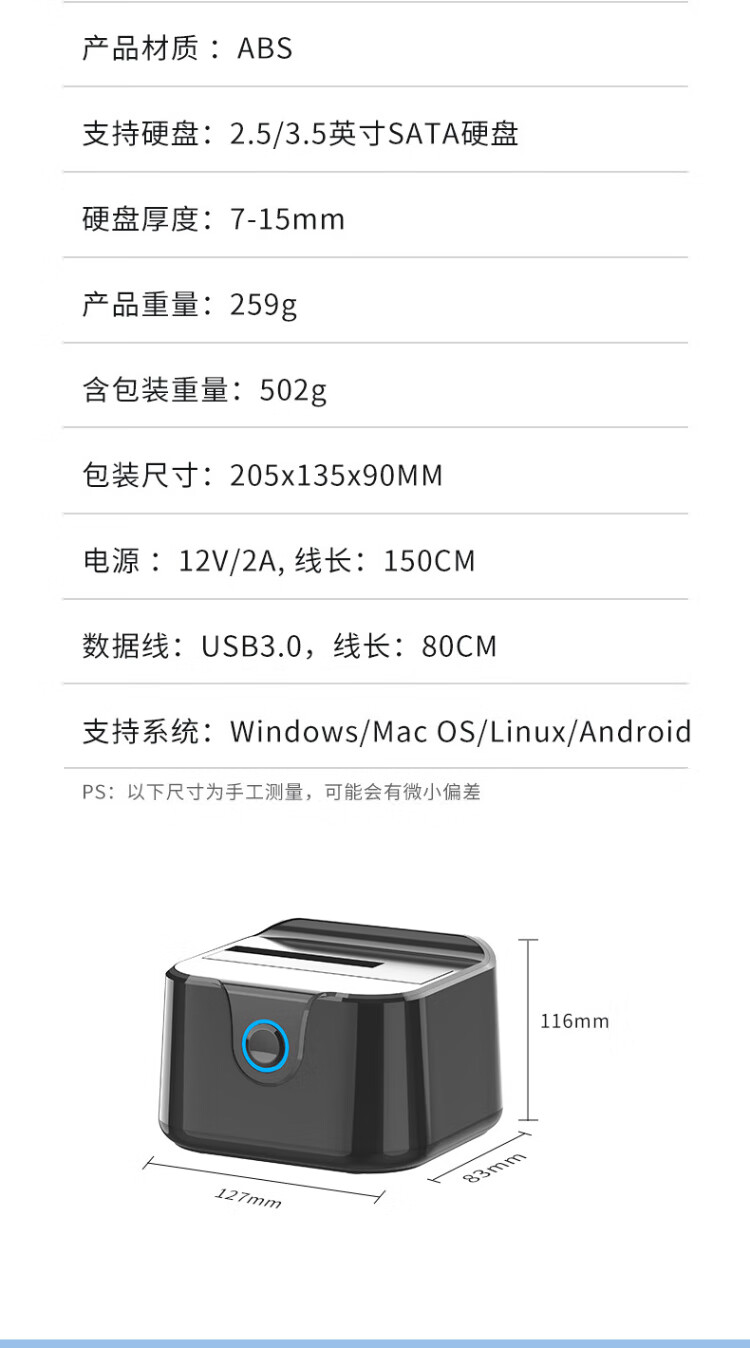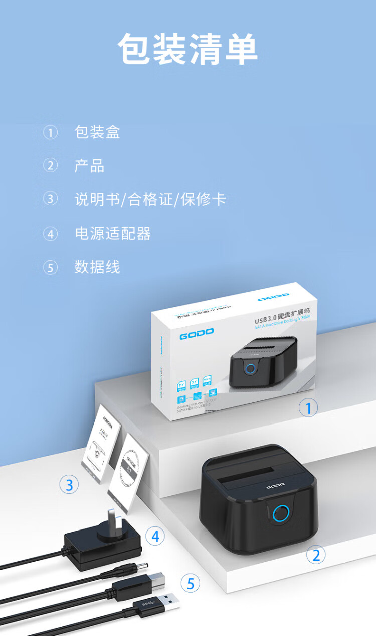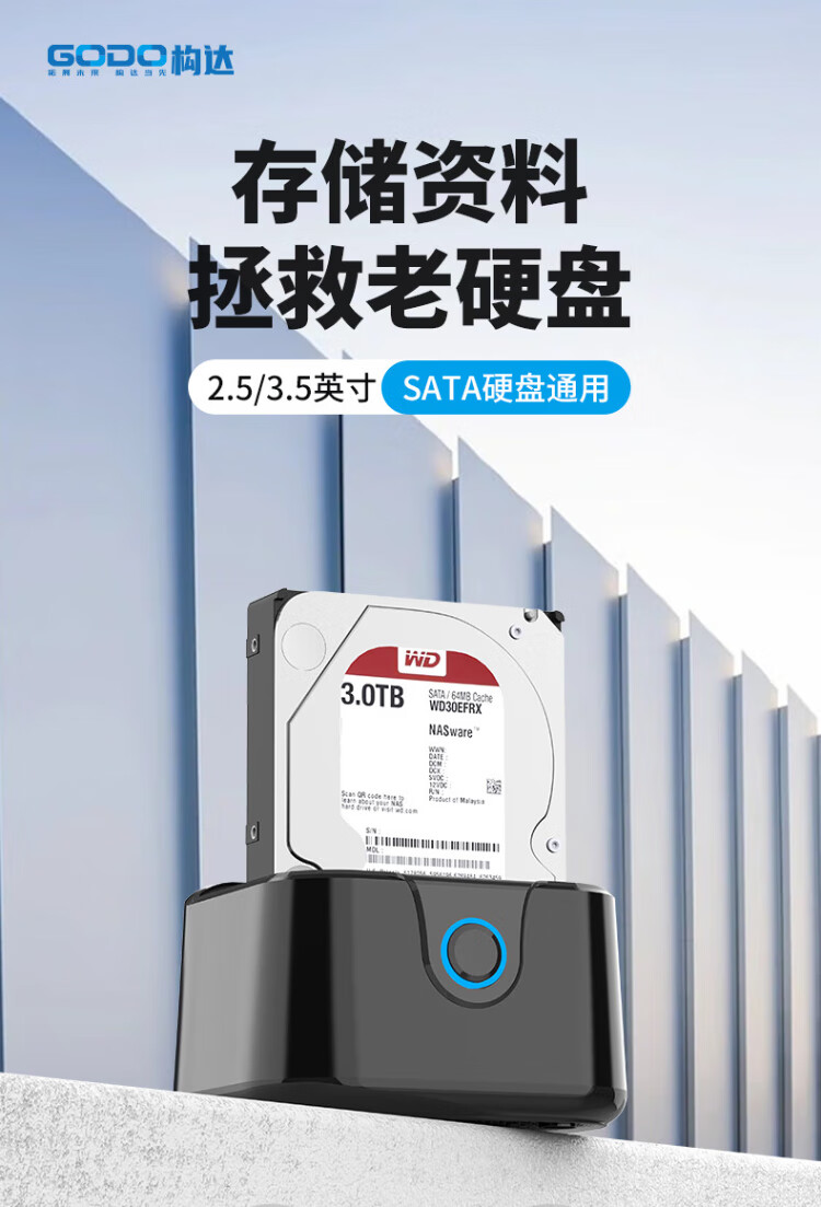 GODO mechanical solid-state drive box base external 2.5/3.5-inch USB3.0 single drive suitable for laptops and desktop computers SATA external mobile hard drive box universal