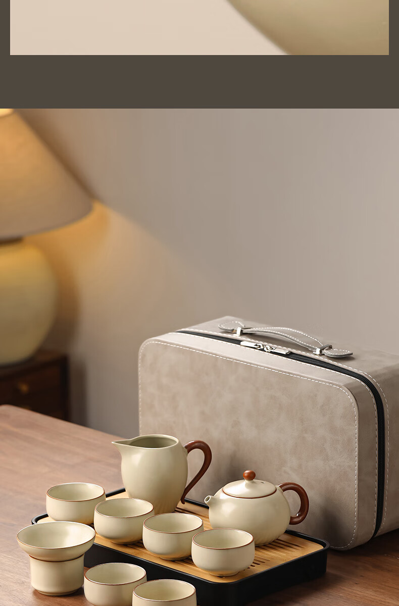 Shangyanfang Ru Kiln Travel Tea Set Portable Outdoor Camping Travel Kung Fu Tea Set Housewarming Business Gift Souvenir