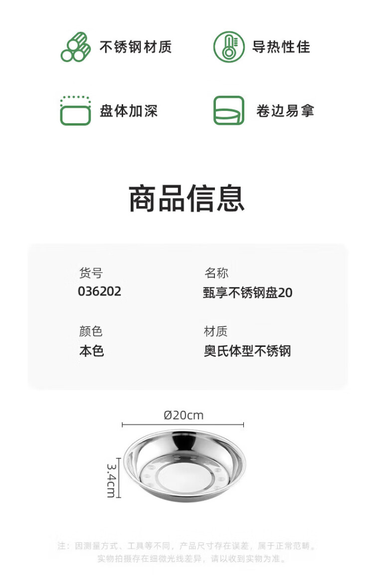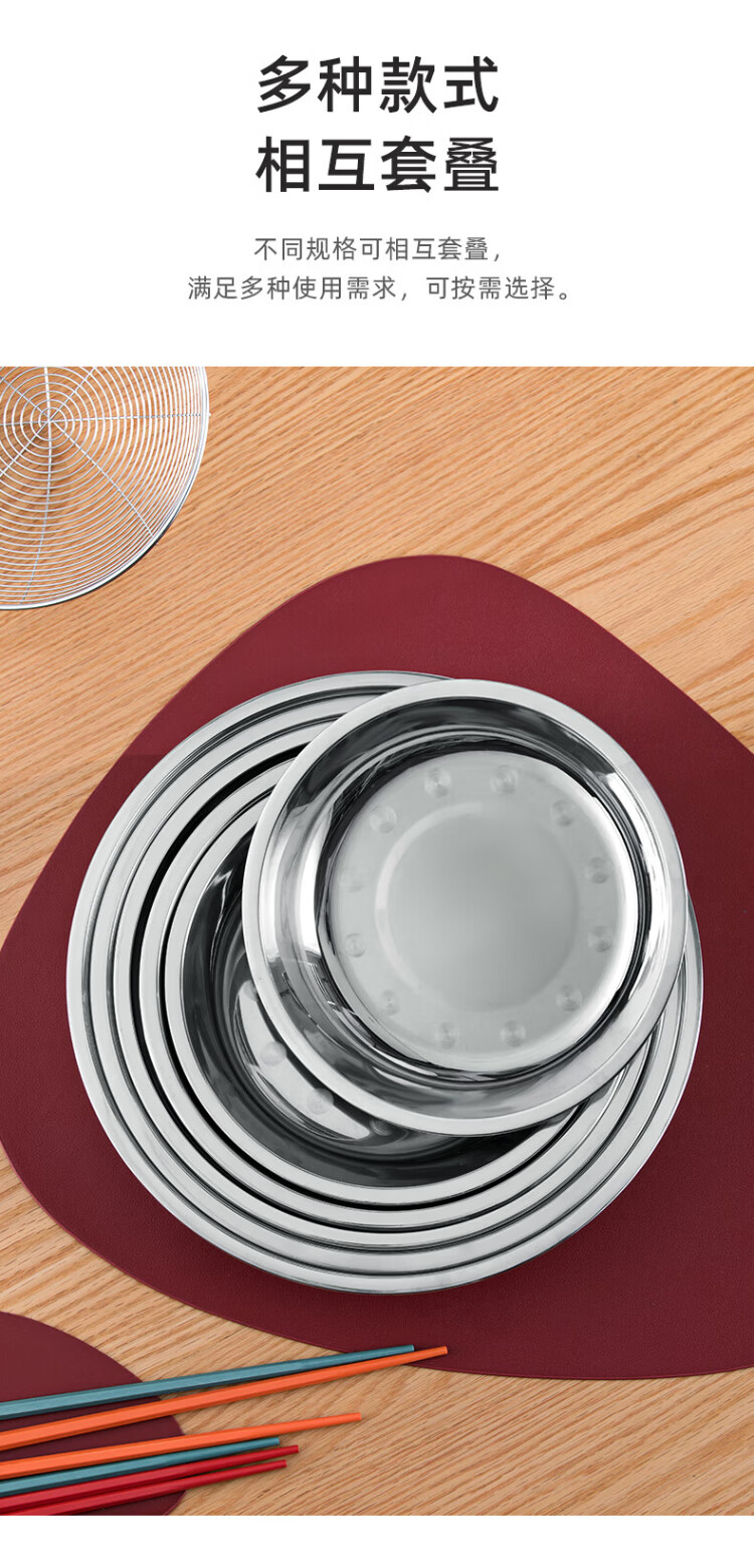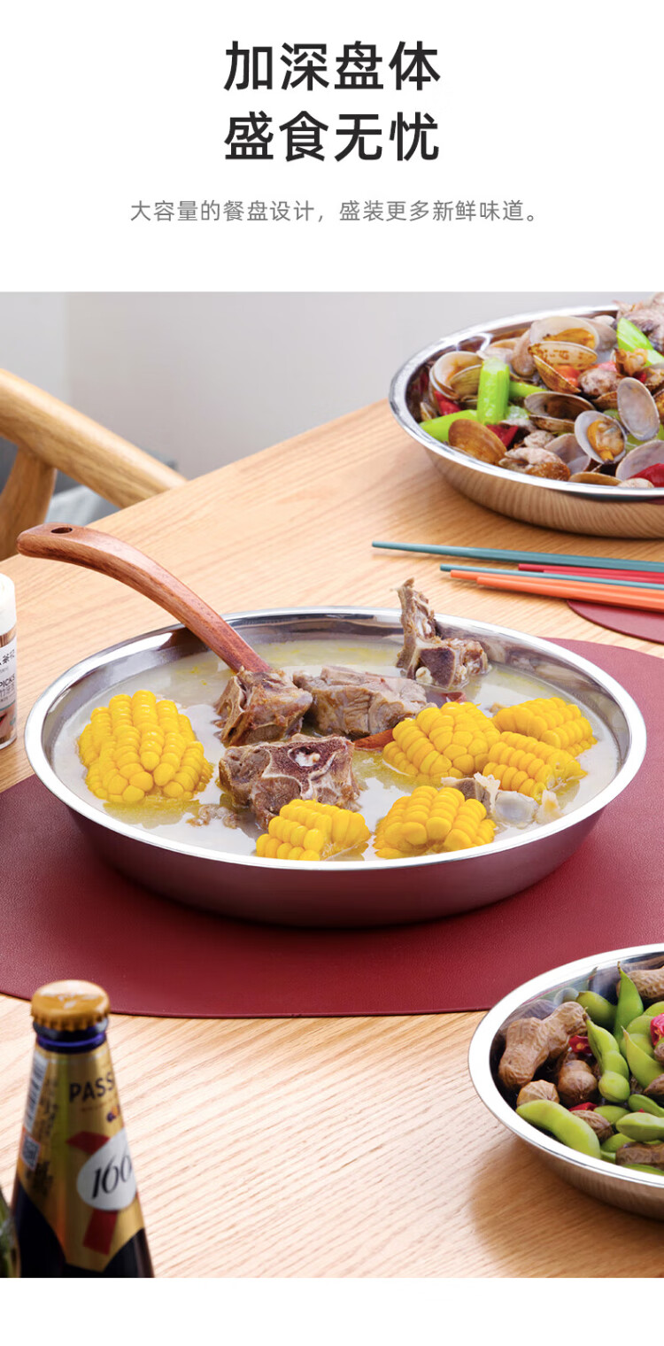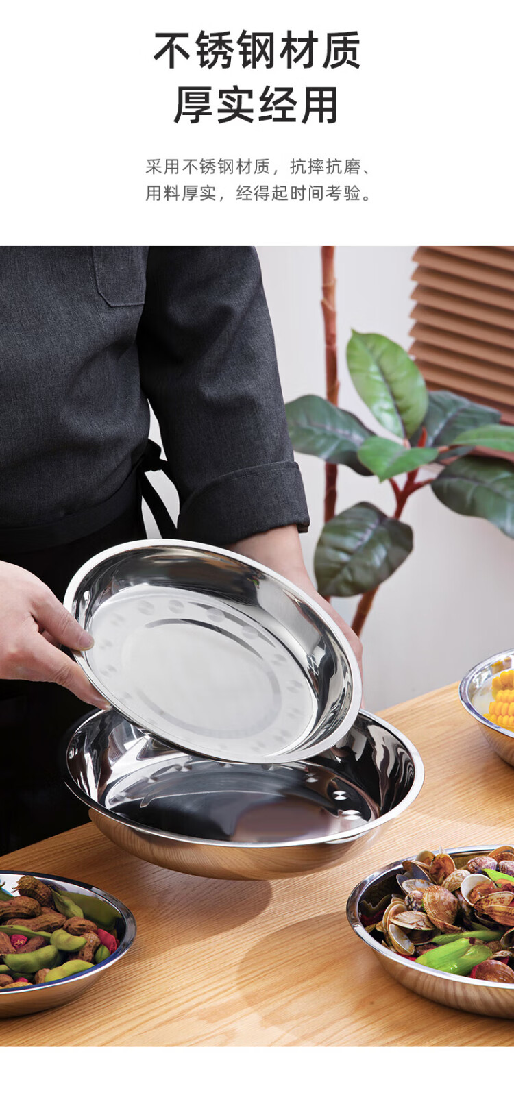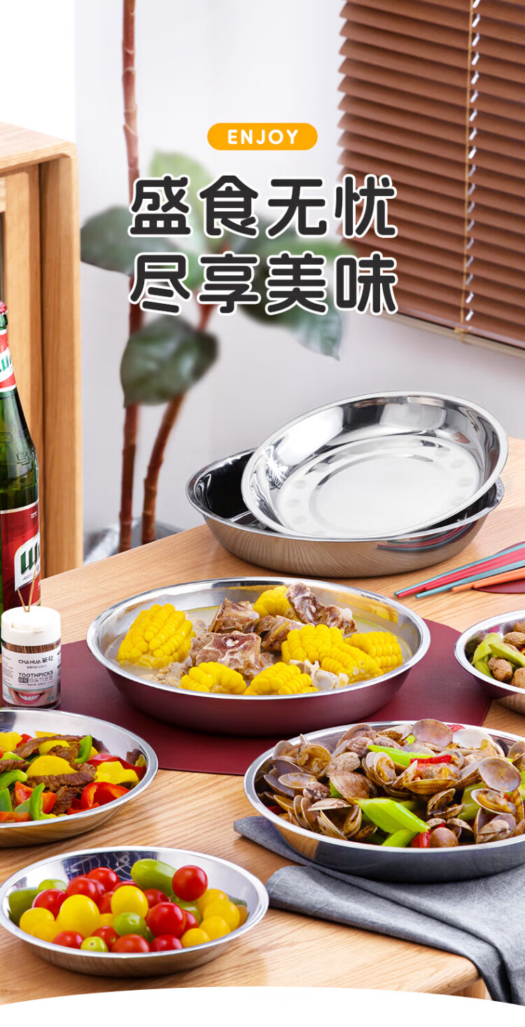 Camellia (CHAHUA) Zhenxiang stainless steel plate thickened round plate household dish plate dinner plate barbecue household small shallow plate 20 cm