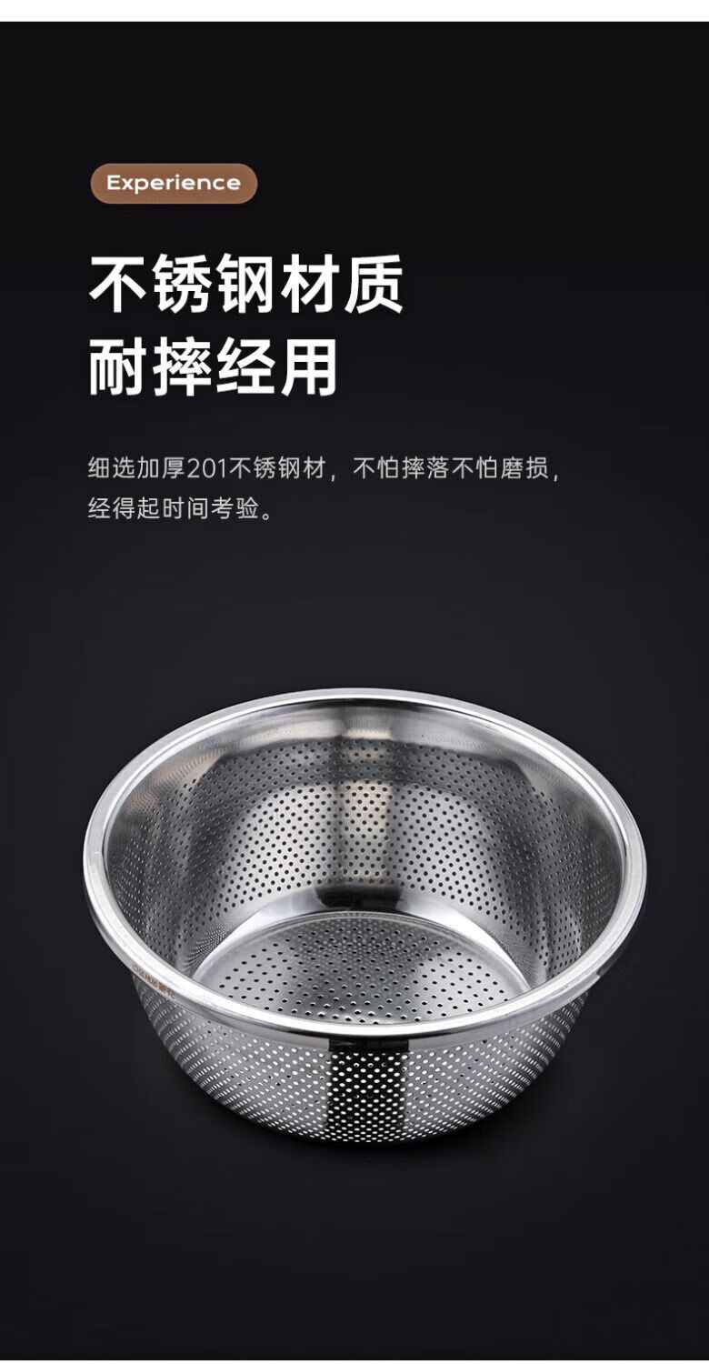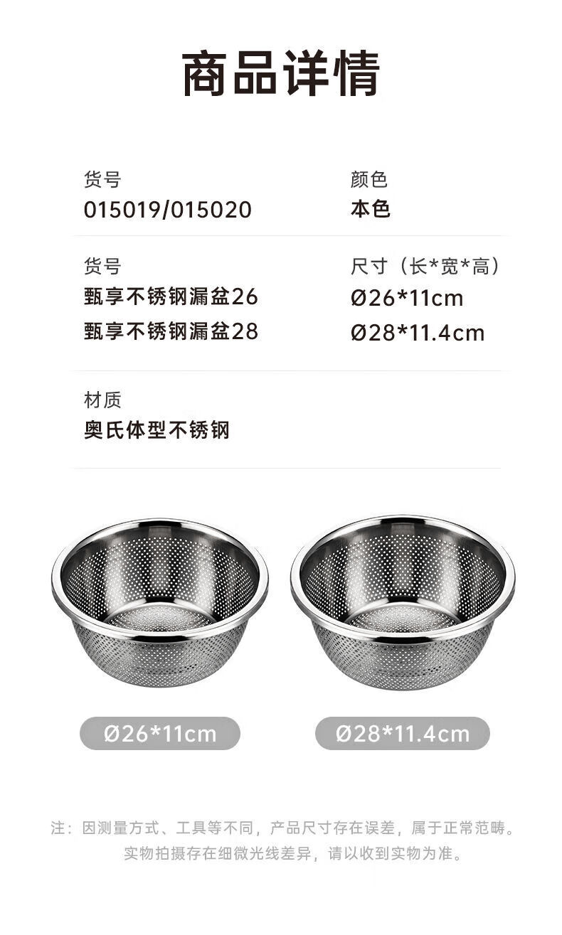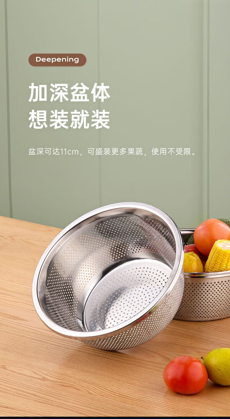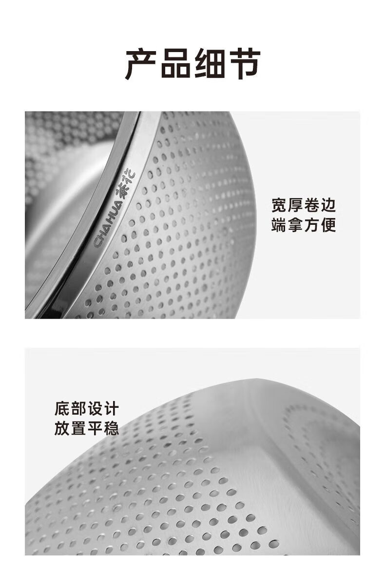 Camellia (CHAHUA) Zhenxiang stainless steel vegetable washing and draining basket household kitchen drain basin rice cleaning artifact drain basket 26 cm vegetable basket