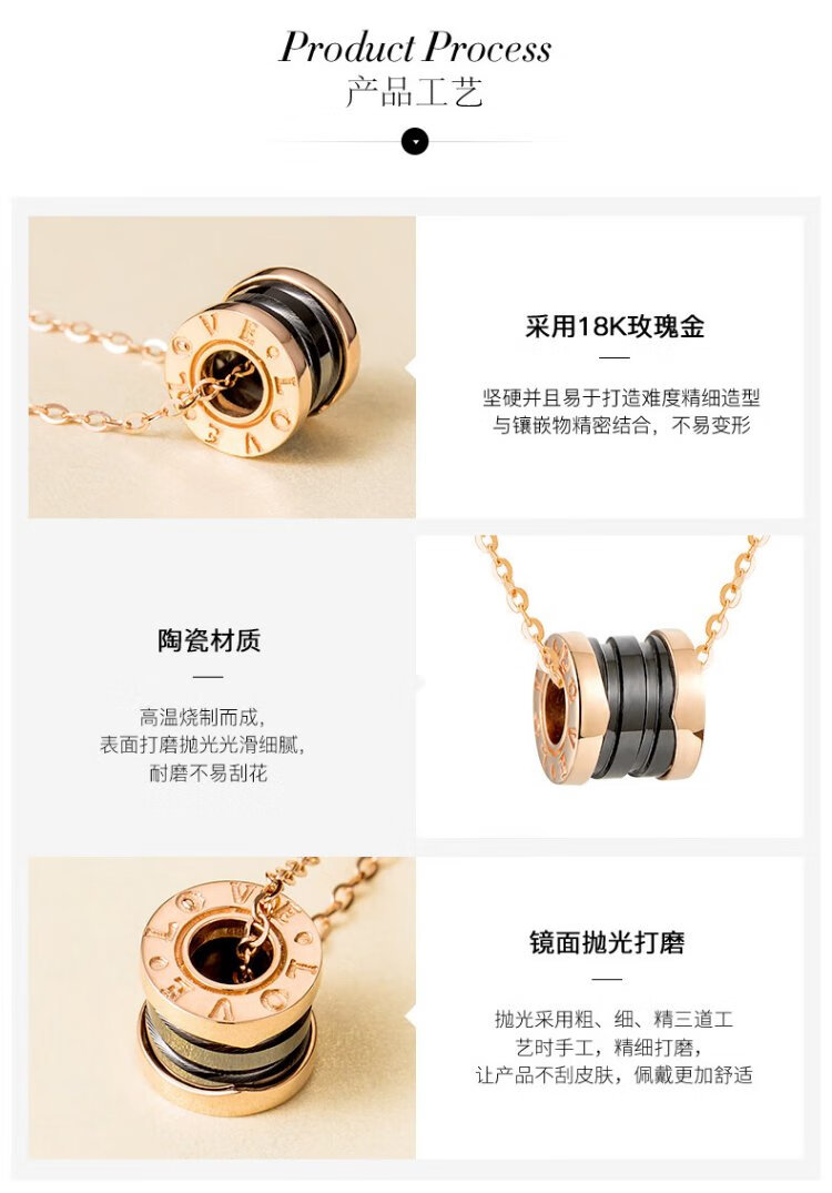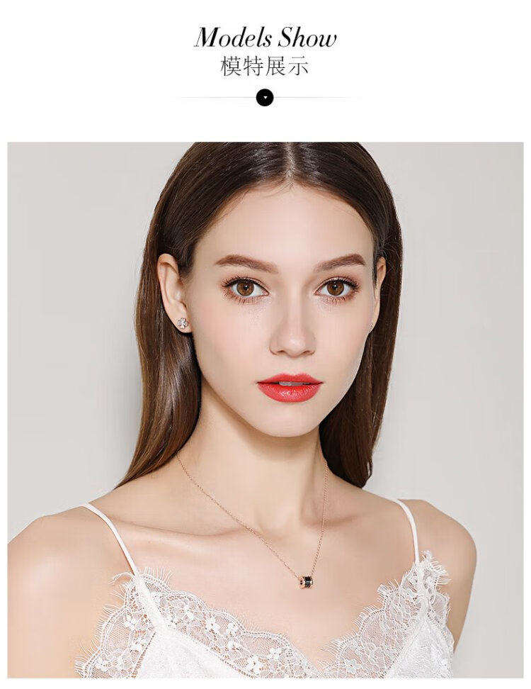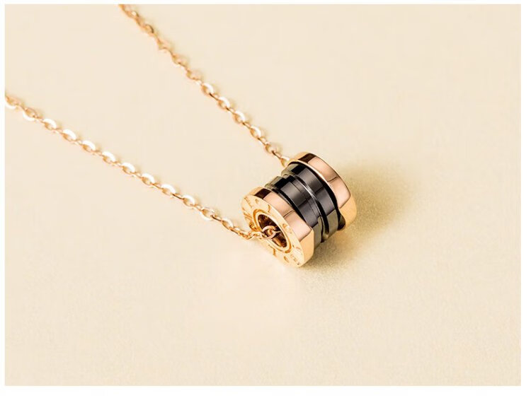 VCIXYOU 18k gold necklace for women rose gold black ceramic pendant small waist clavicle chain for girlfriend Chinese Valentine's Day gift