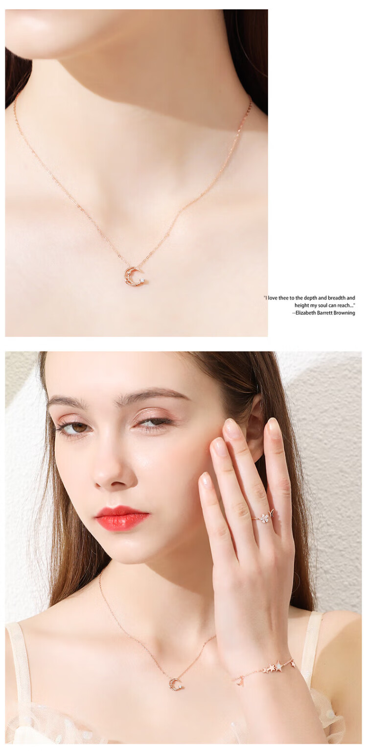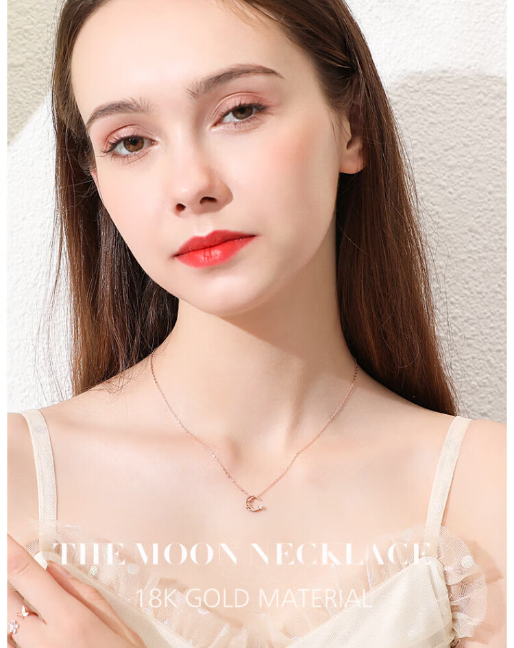 VCIXYOU Star and Moon Necklace Women's 18k Gold Rose Gold Clavicle Chain Color Gold Pendant Chinese Valentine's Day Gift for Girlfriend