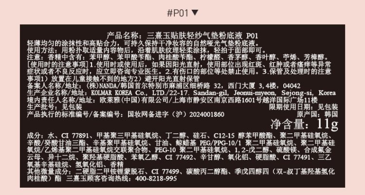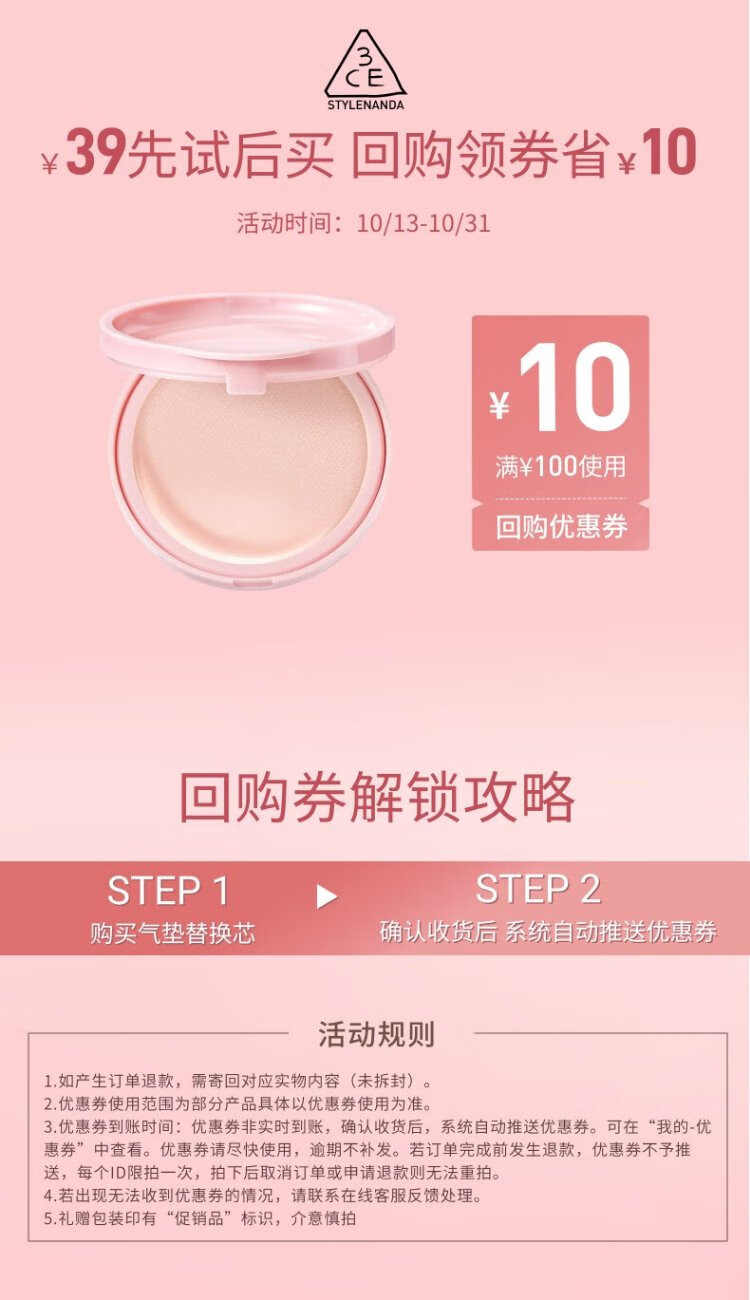 3CE Sanxi Jade Skin-fitting Air Cushion Foundation P01 Refill
