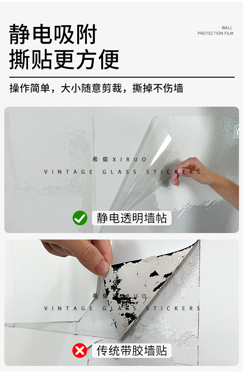 Xiluo latex paint wall protective film static electricity does not hurt large white wall stickers wall sofa anti-kick, dirty, waterproof and moisture-proof wall stickers