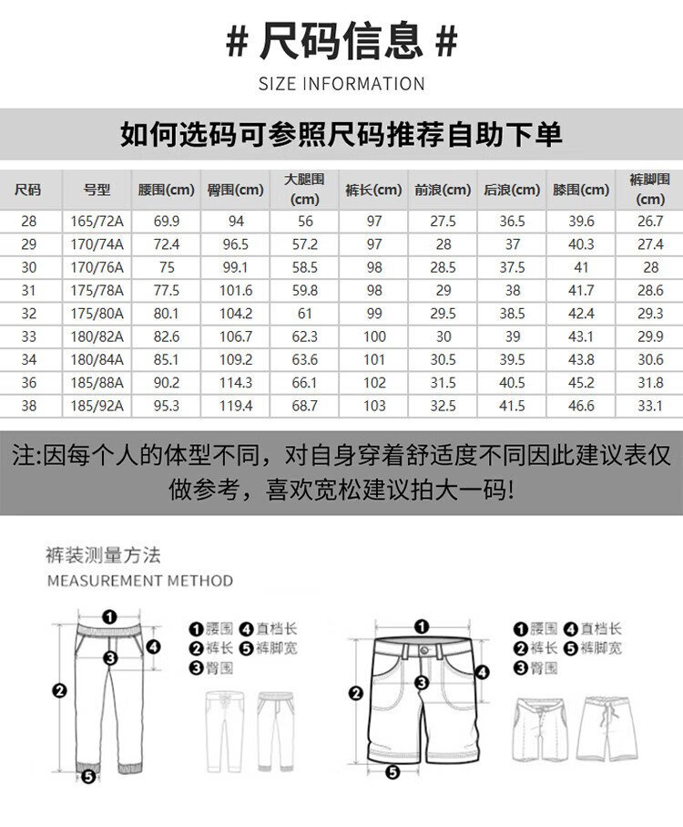 USA(inch) 28-30 30-32 32-34 34-38 38-42