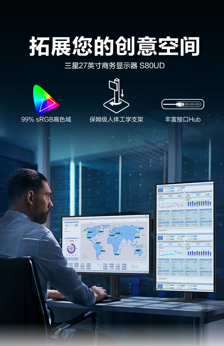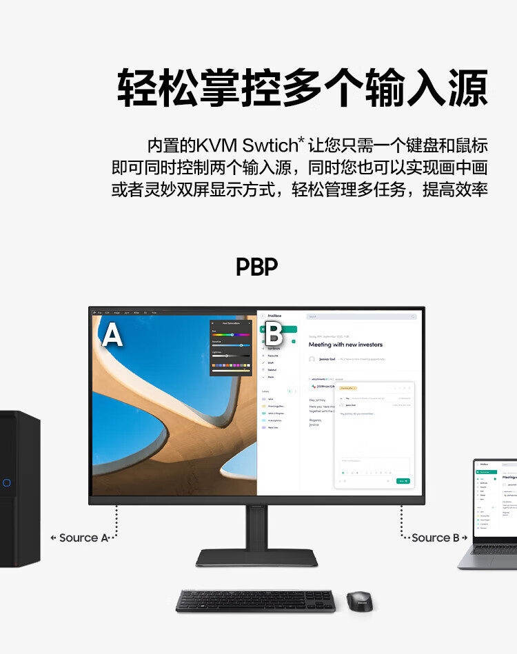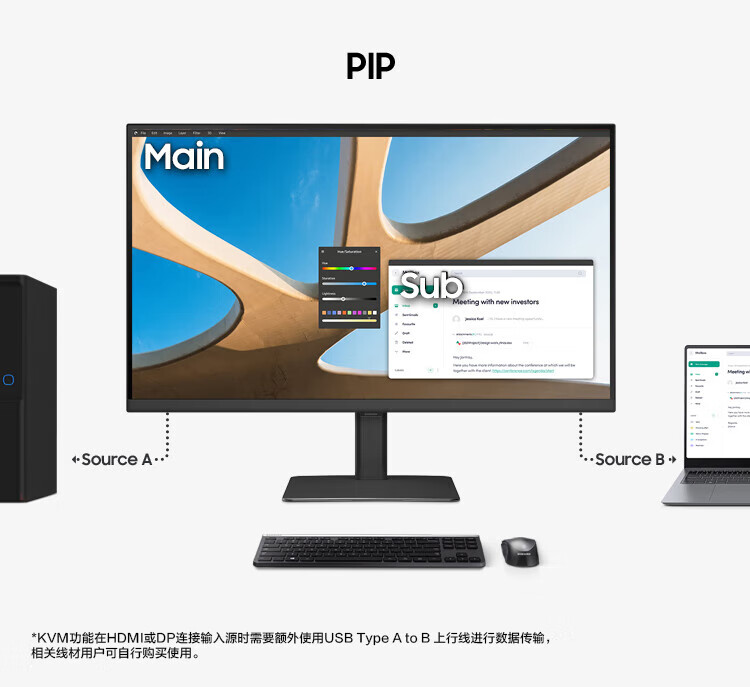 Samsung (SAMSUNG) 27-inch S80UD IPS 4K HDR 90W Type-C 1.07 billion colors KVM PBP computer office monitor LS27D800UACXX