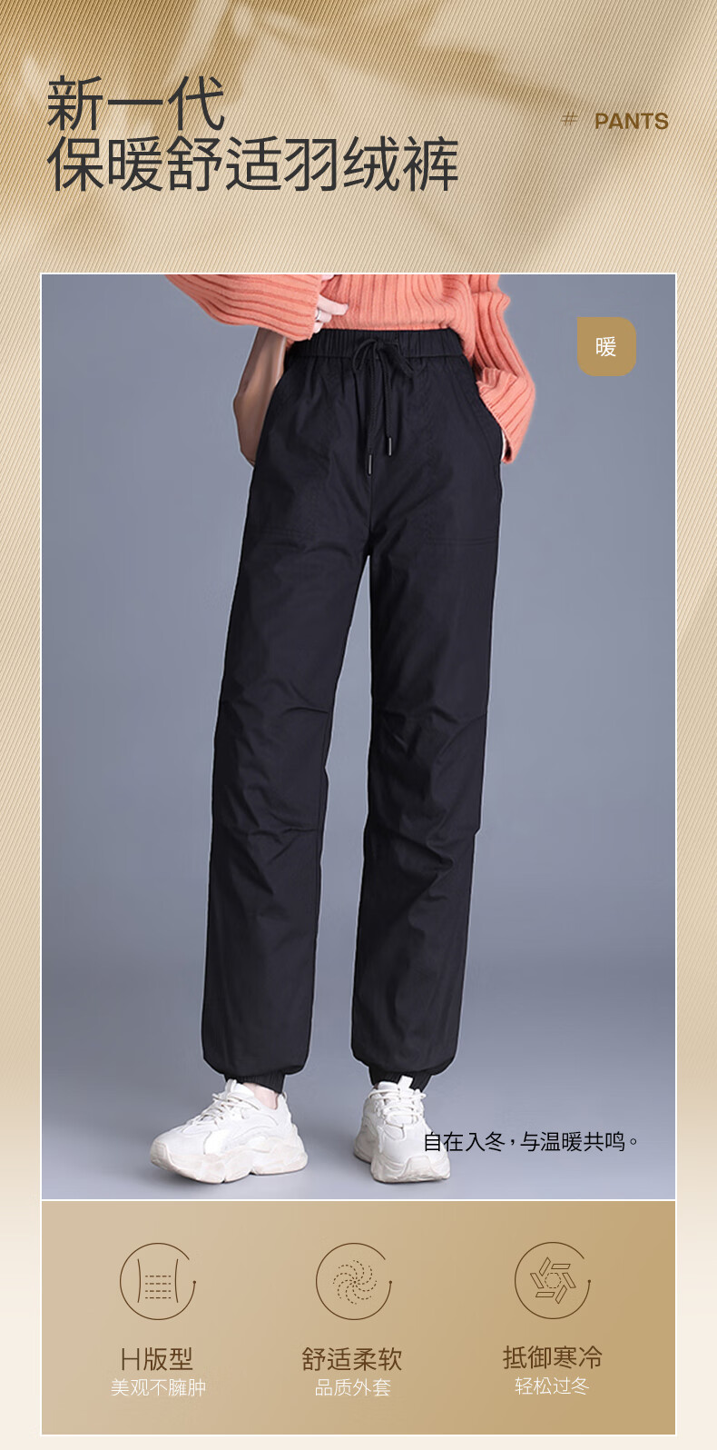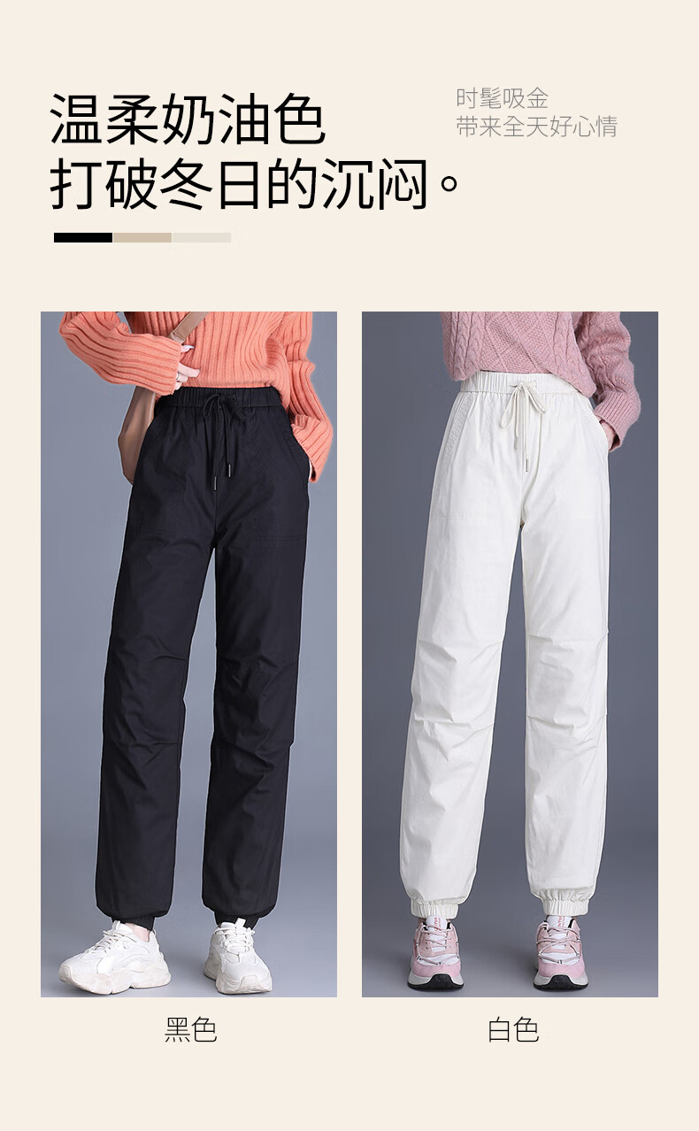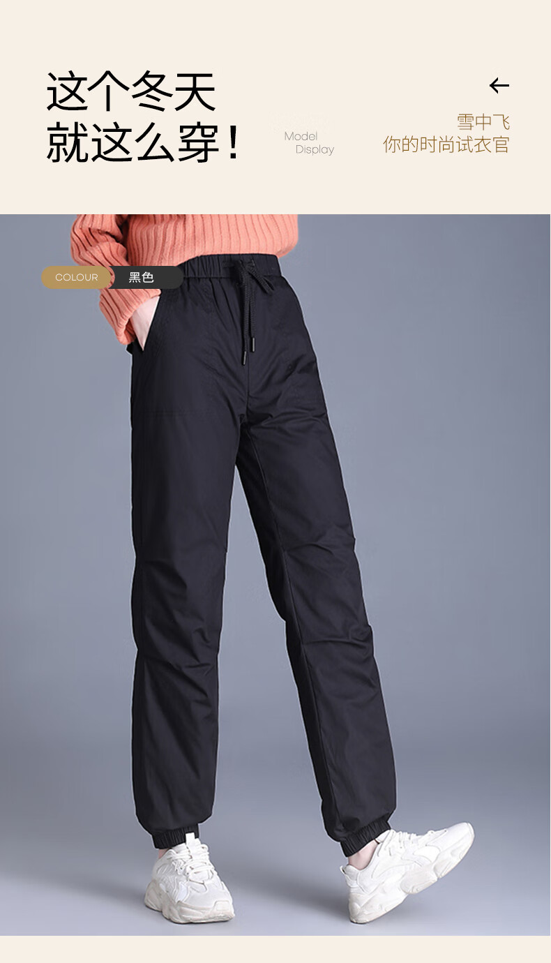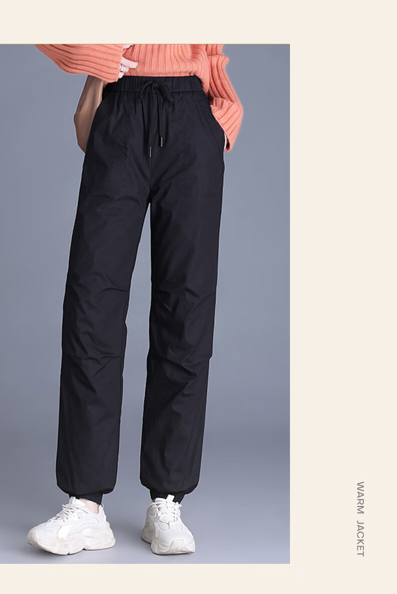 Flying in the Snow Down Pants Women's Autumn and Winter Warm Elastic Waist Drawstring Leg Pants Black 165/72A