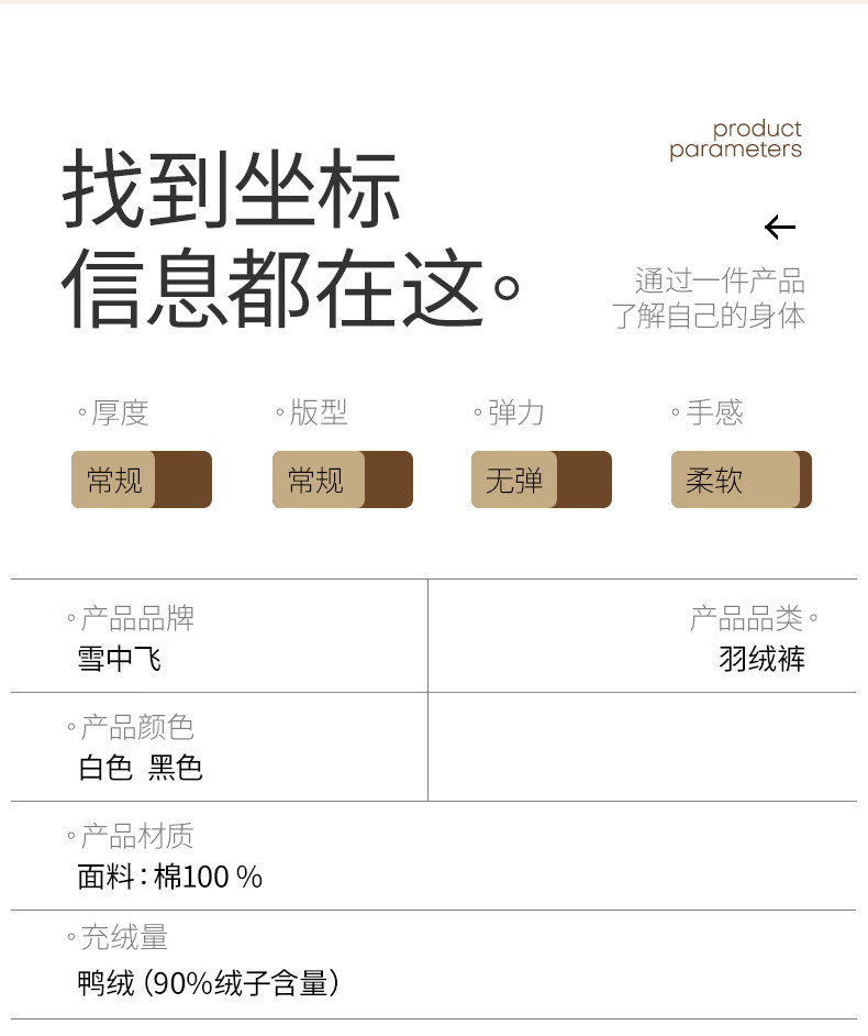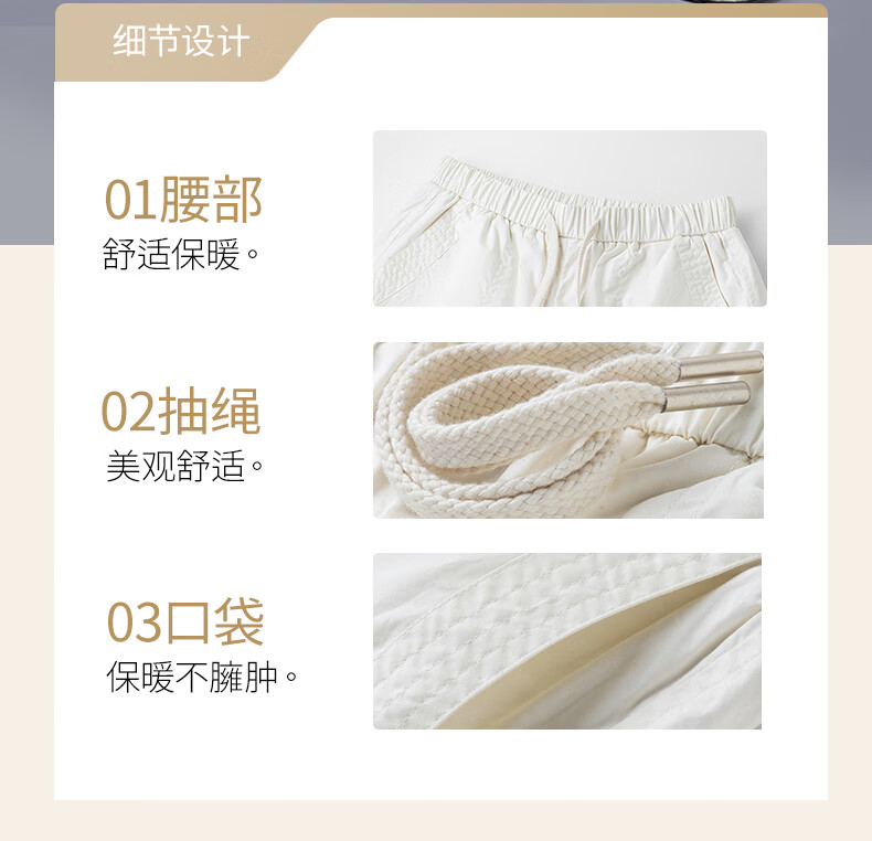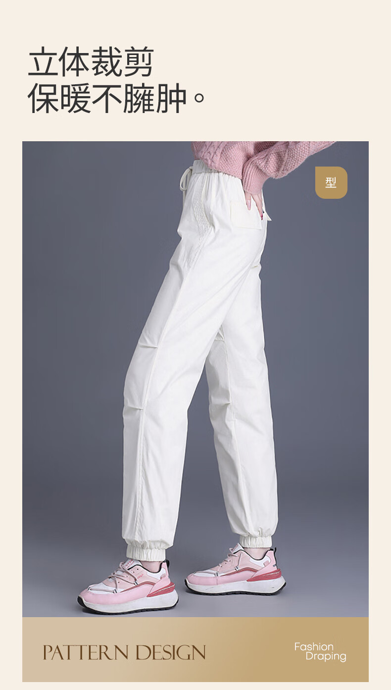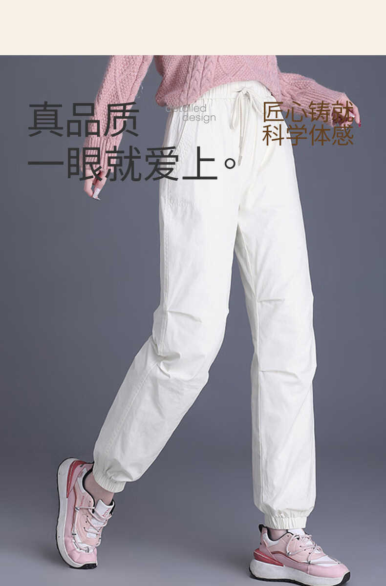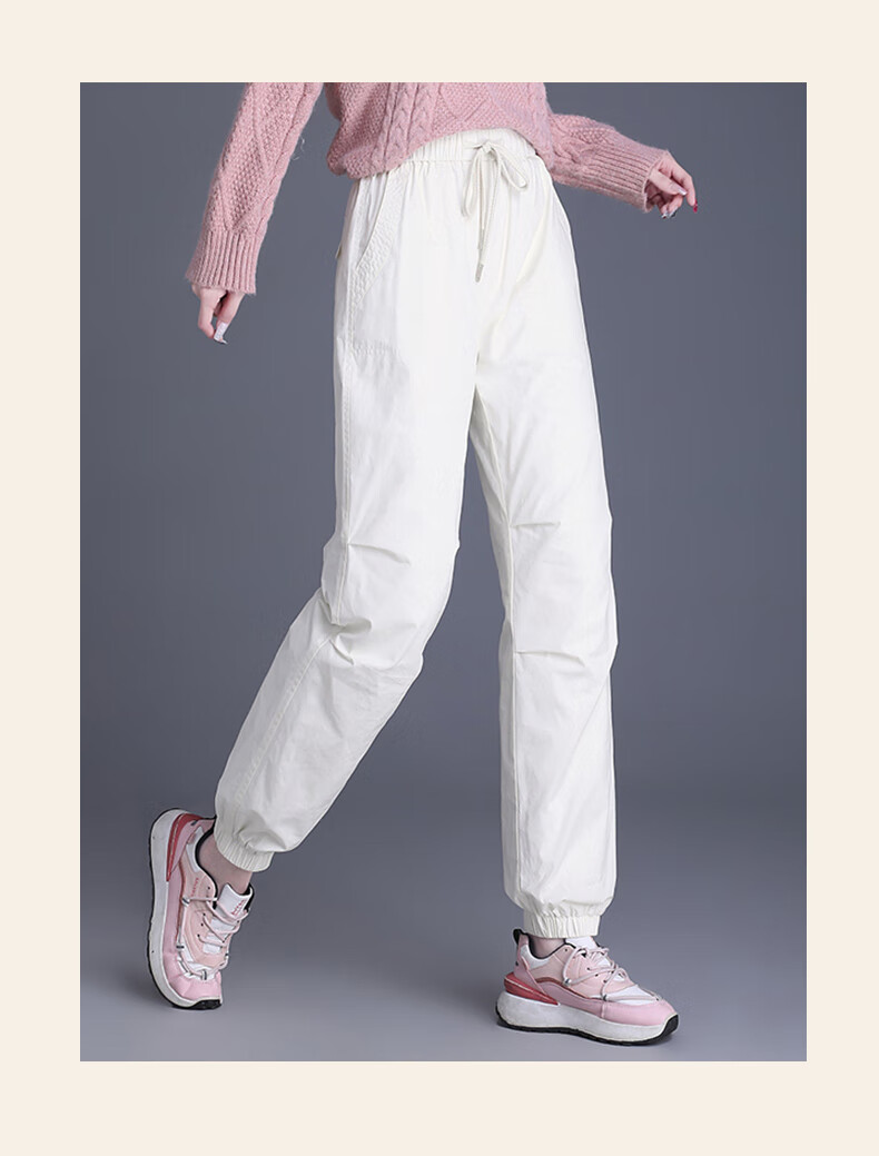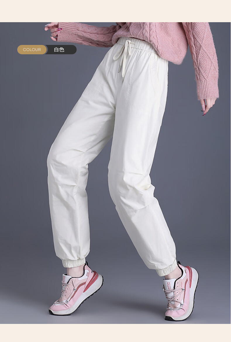 Flying in the Snow Down Pants Women's Autumn and Winter Warm Elastic Waist Drawstring Leg Pants Black 165/72A