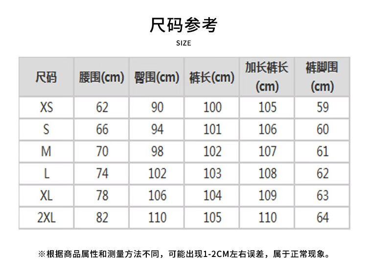 Outseam (cm) 99 cm 101.5 cm 104 cm 106.5 cm 109 cm