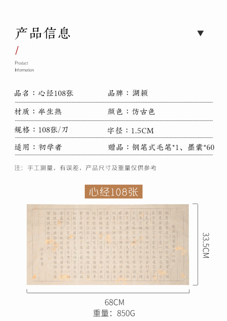 Hu Ying Heart Sutra 108-piece Heart Sutra copybook, brush copybook, Buddhist scripture manuscript set, fountain pen-style brush, small regular script, beginners' entry-level copying, soft-pen sutra book tracing, red rice paper, half-cooked