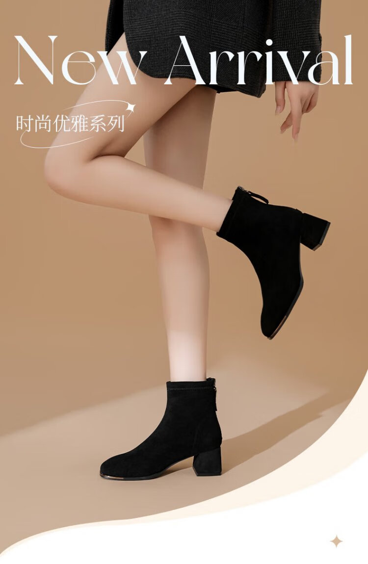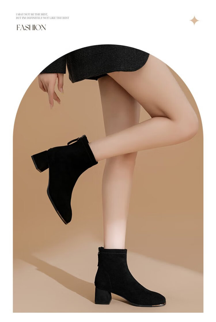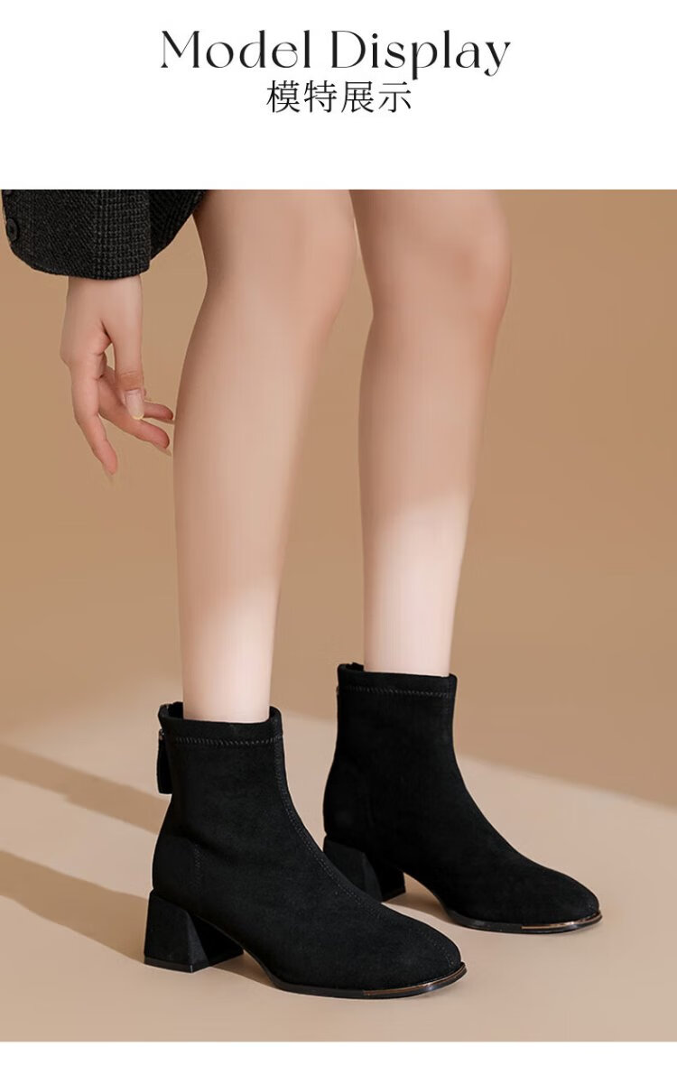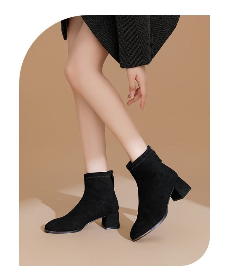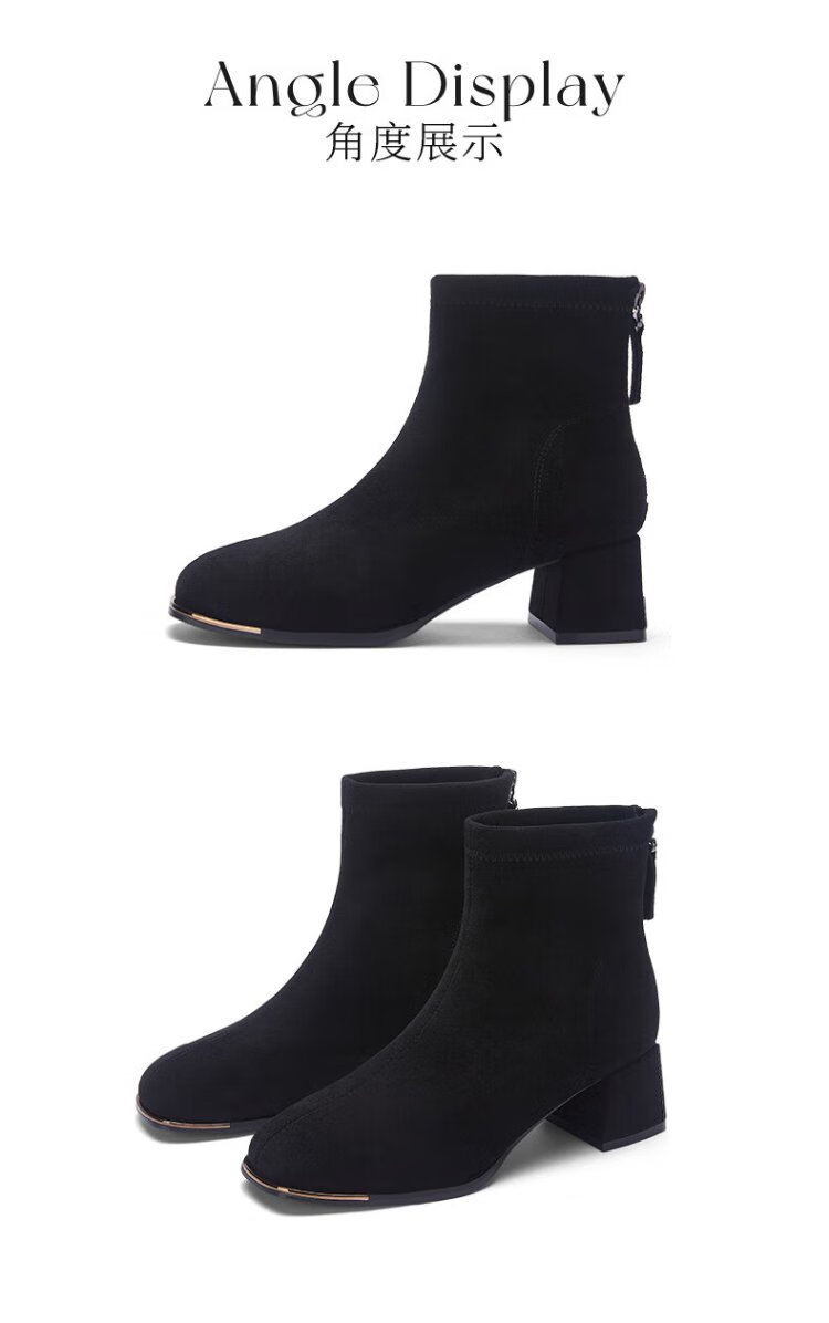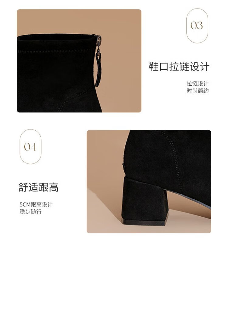 Daphne short boots for women autumn French high heel slim boots black retro suede boots for women black 37