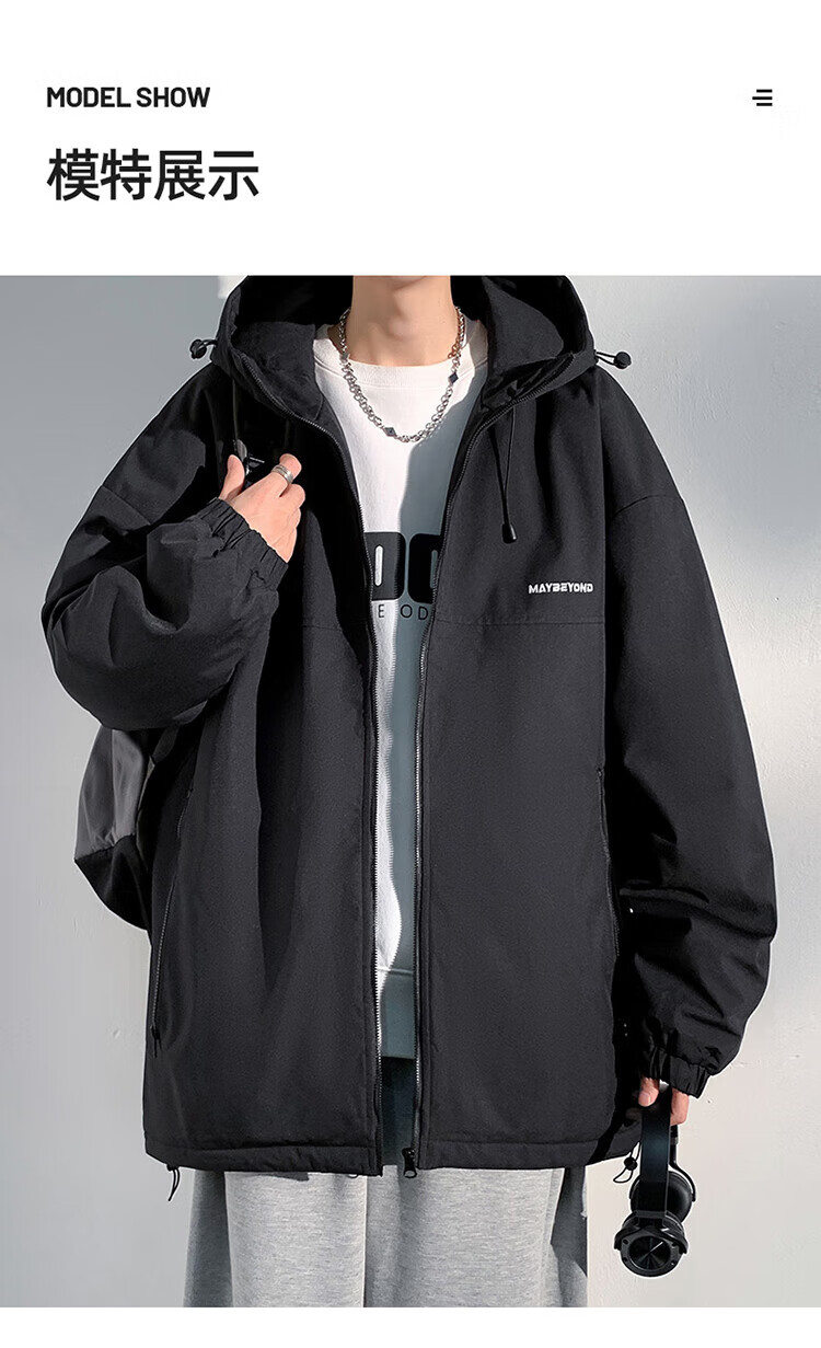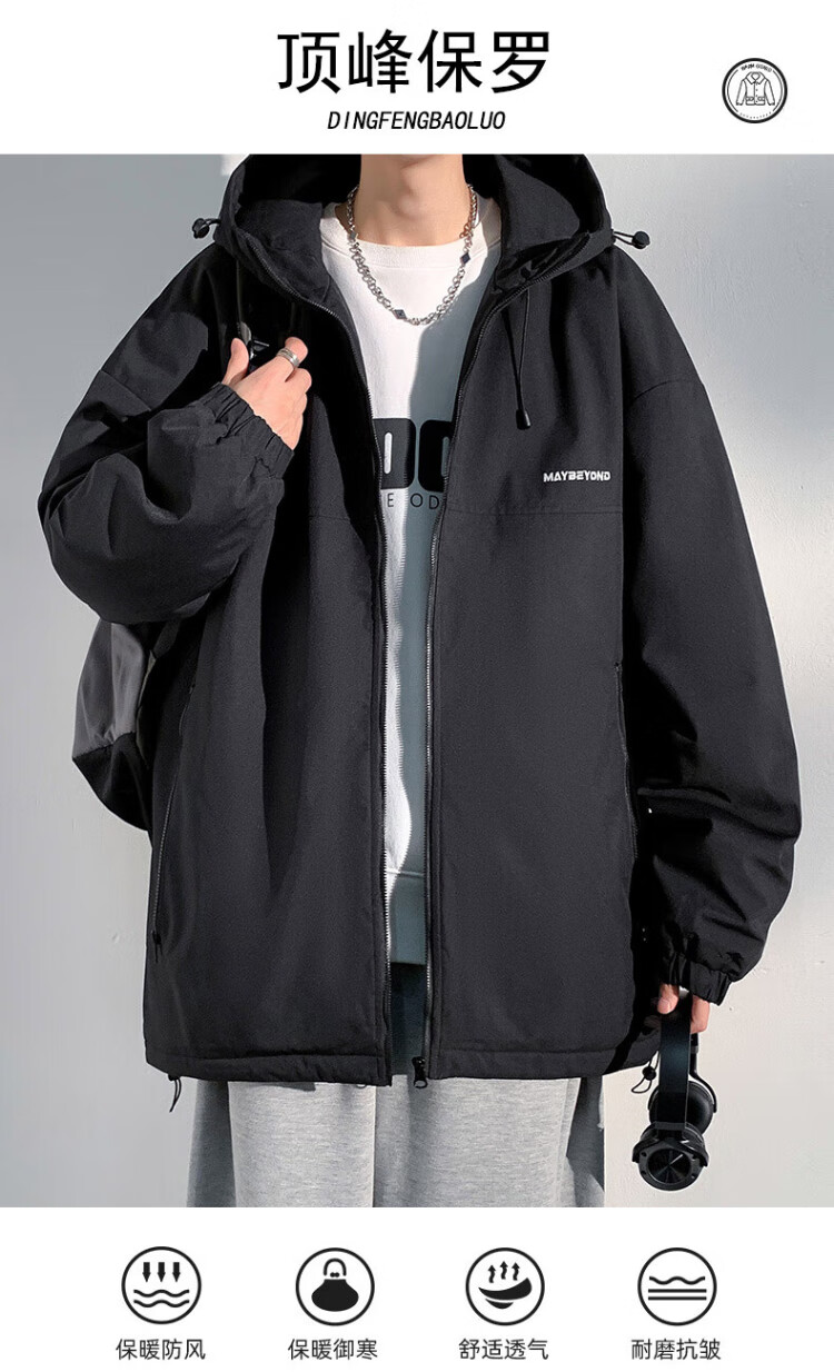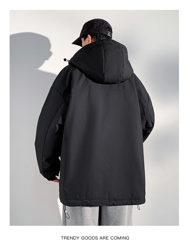 Dingfengbaoluo American cotton jacket men's autumn and winter casual cotton jacket thickened windproof hooded warm cotton jacket DFM18 black XL