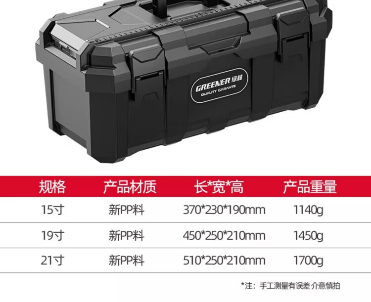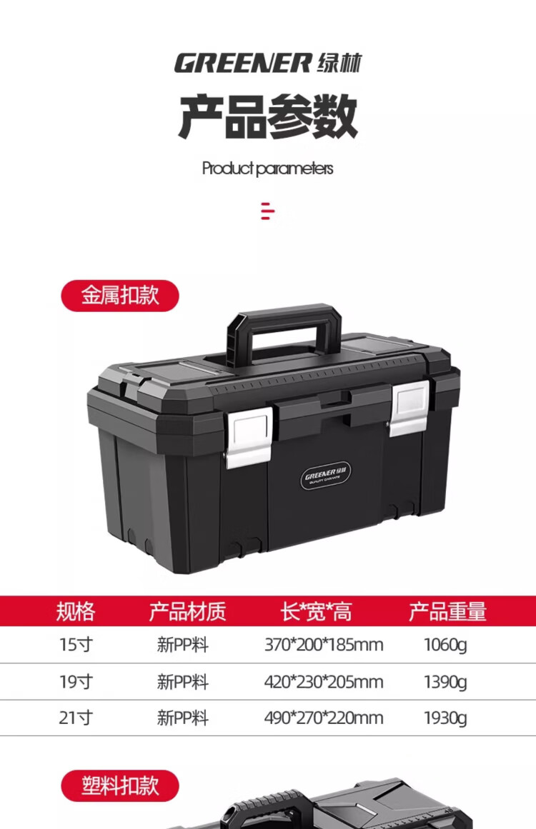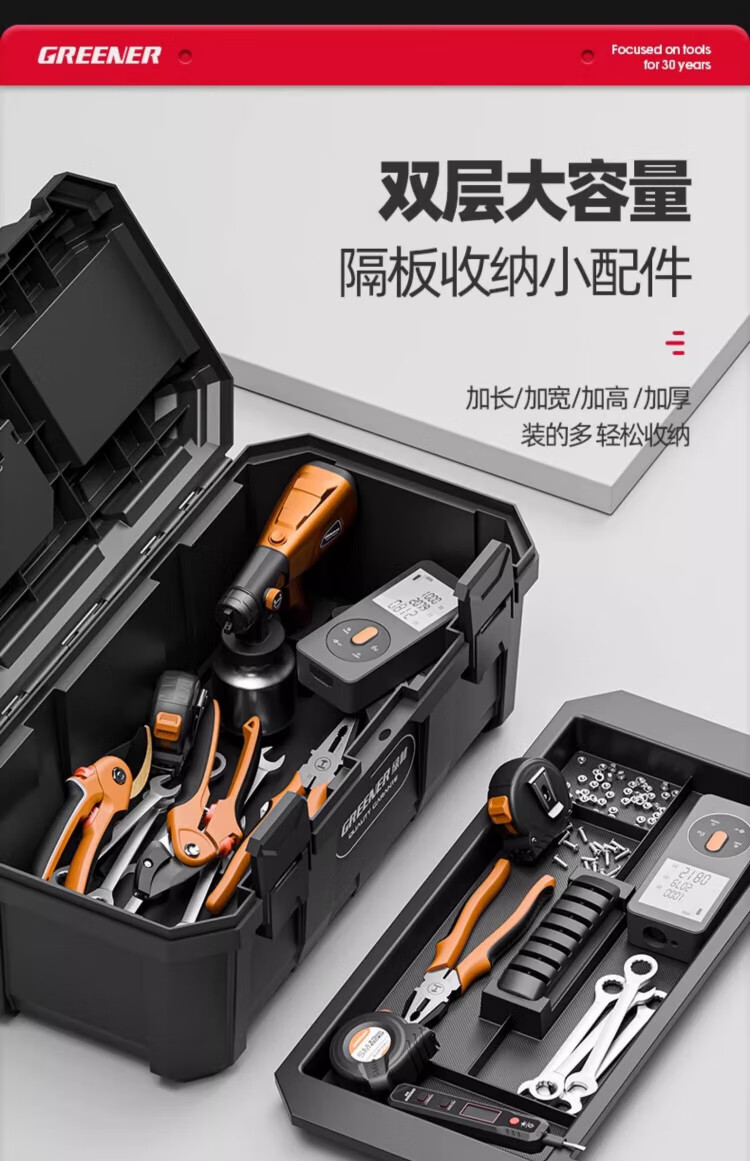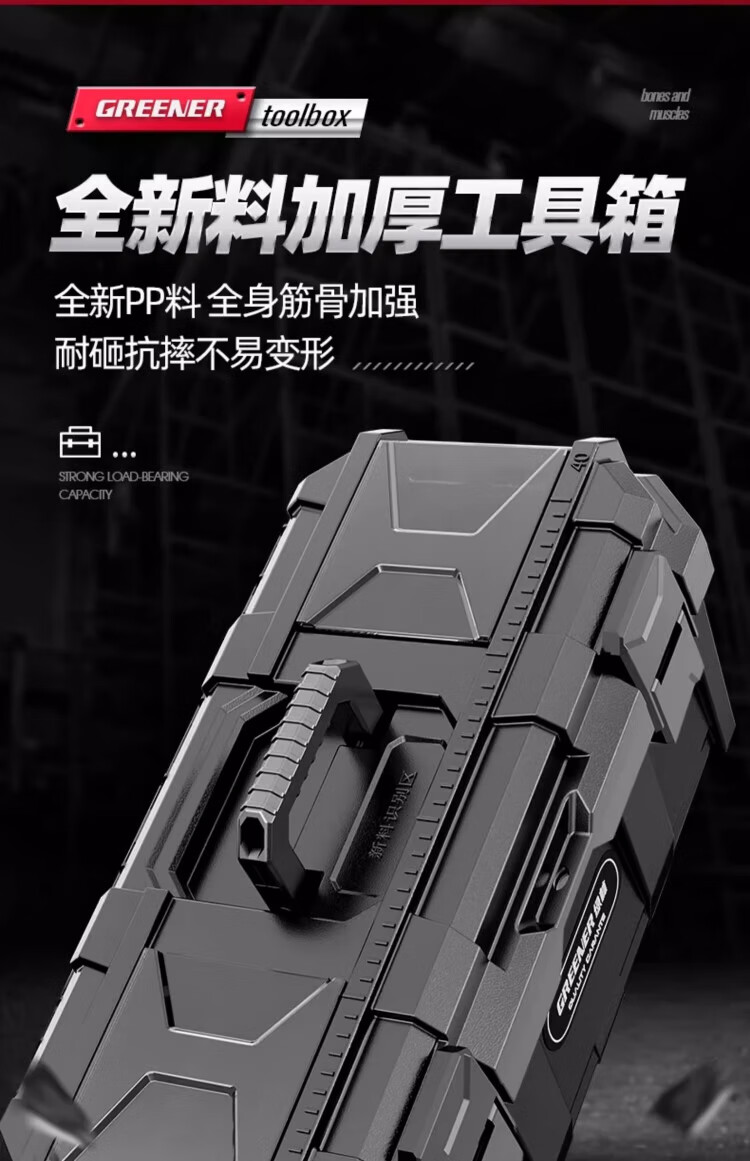 GREENER Black King Kong Thickened Toolbox Storage Box Hardware Large Industrial Grade Home Portable Car Multifunctional Maintenance
