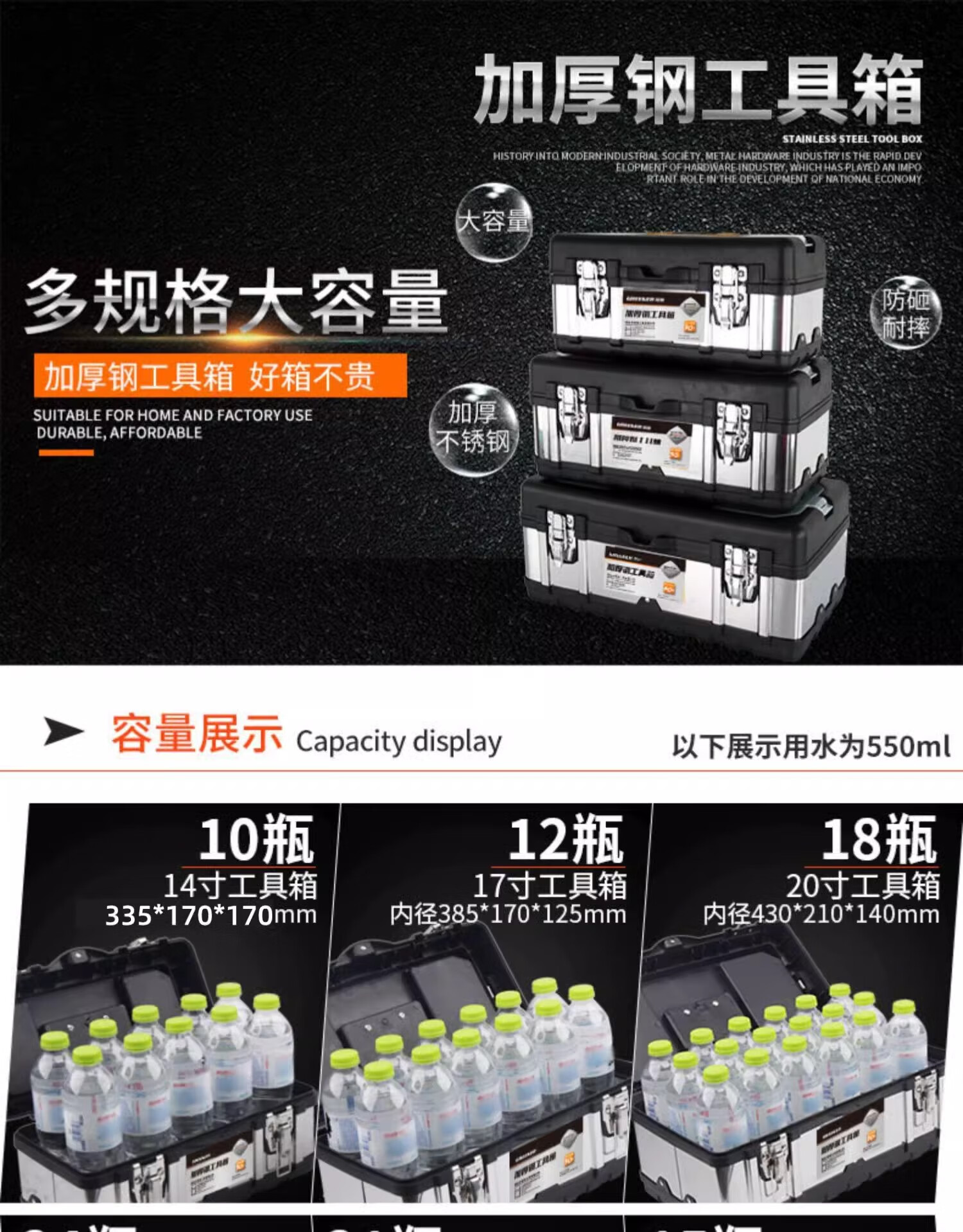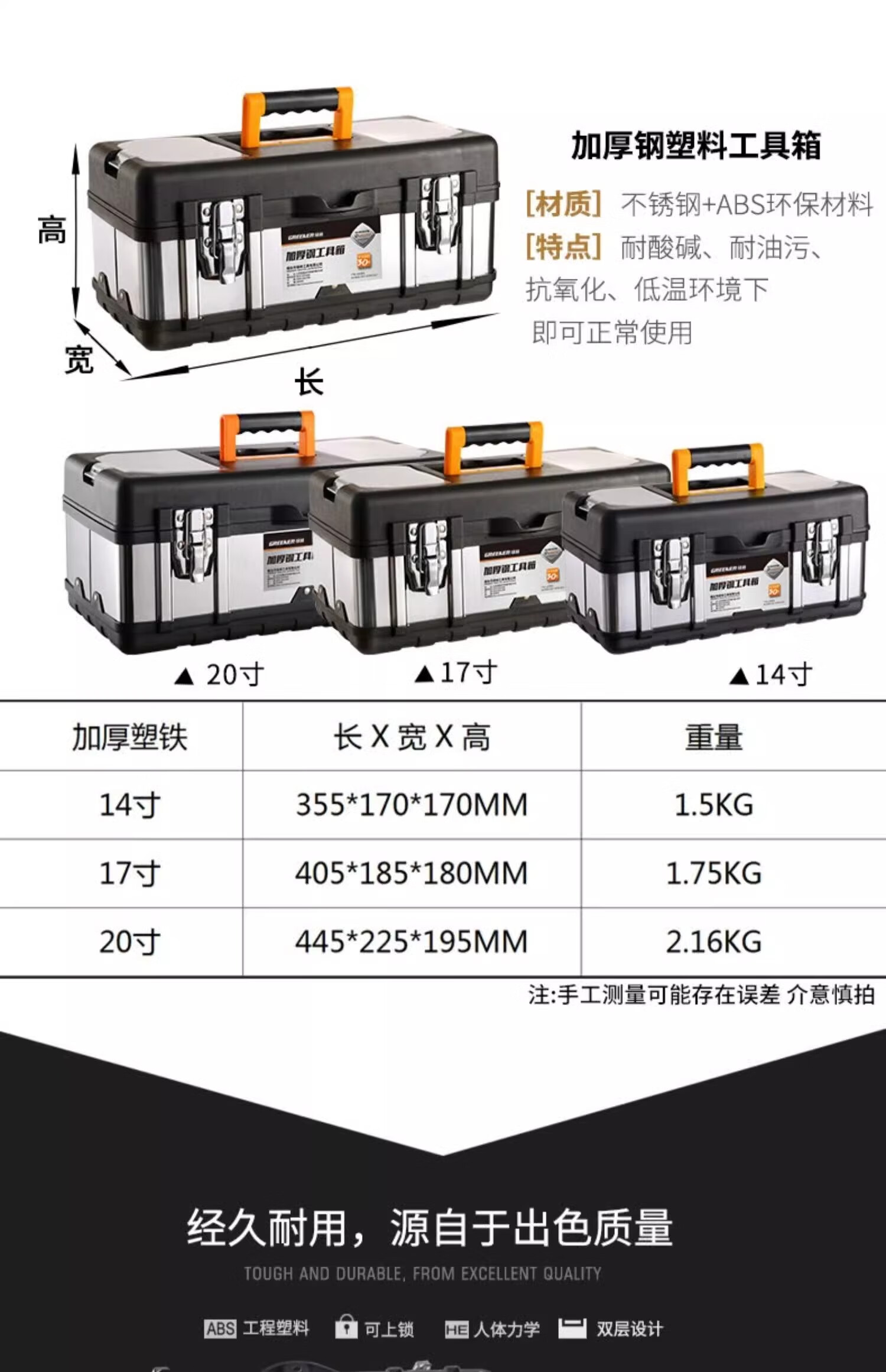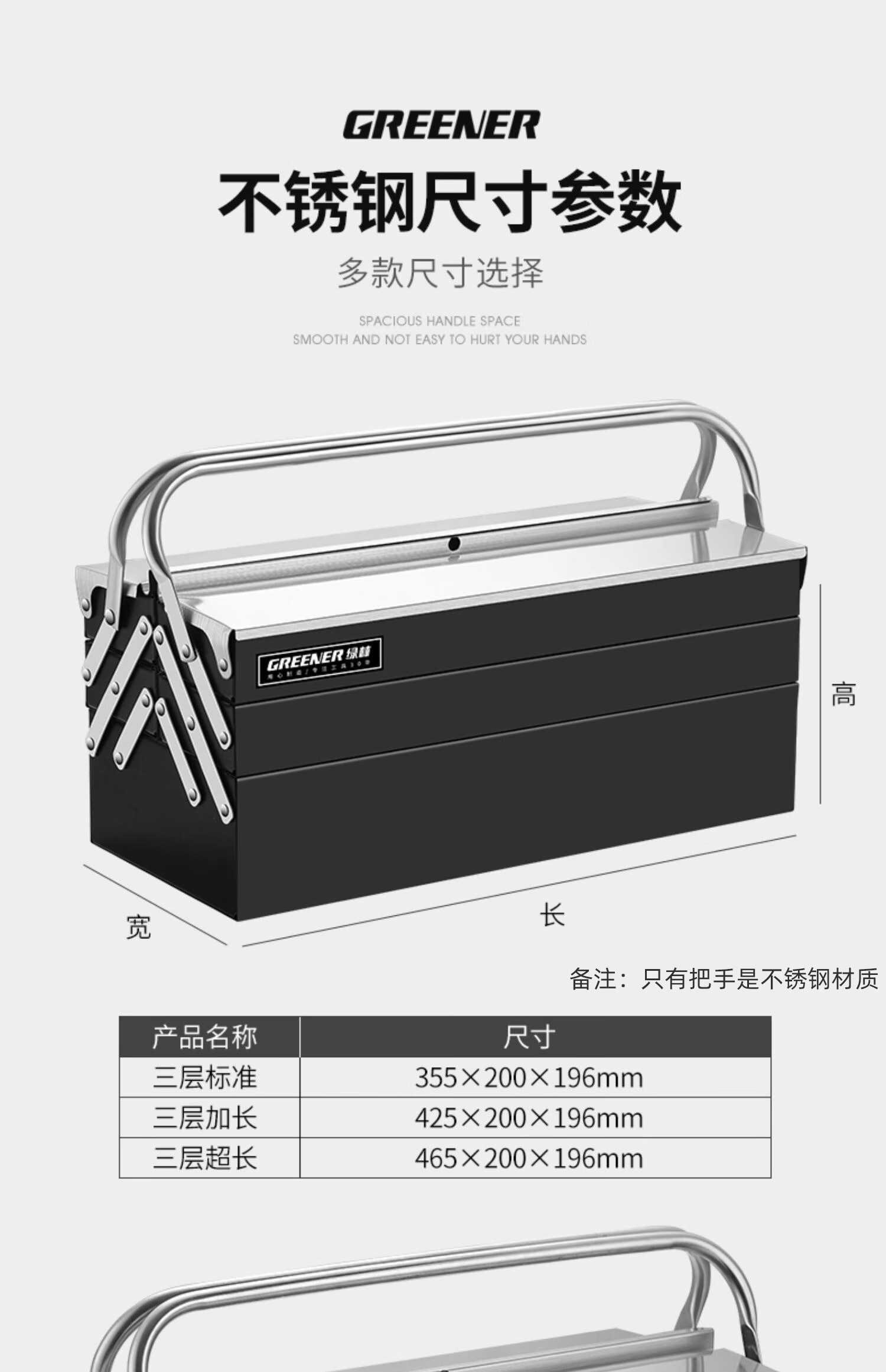 GREENER stainless steel tool box storage box electrician metal portable home car large capacity full set industrial grade multi-function