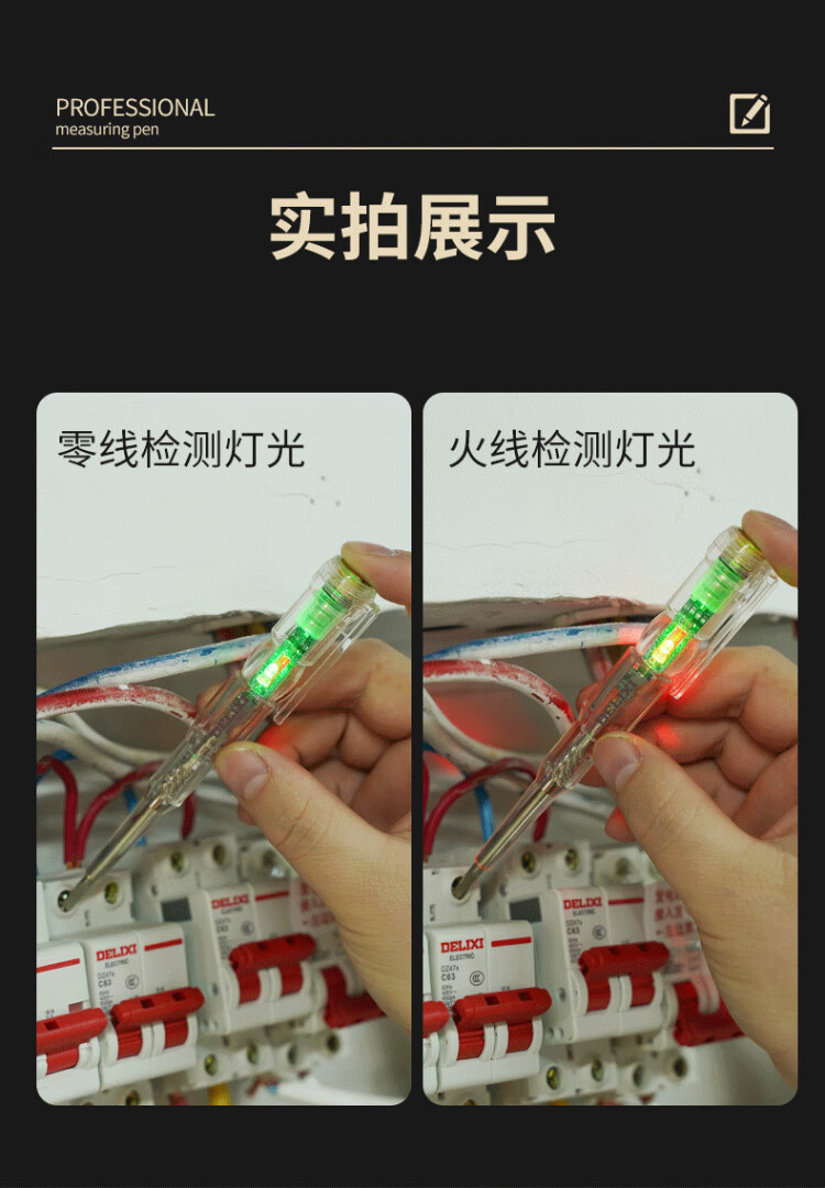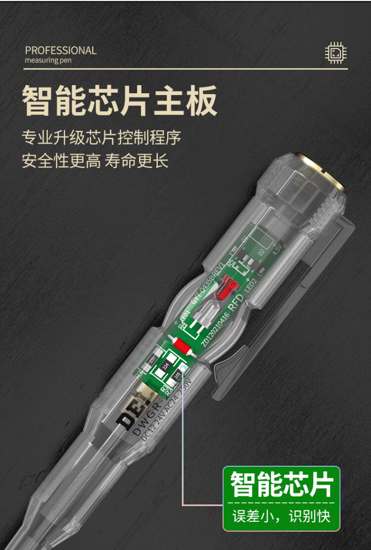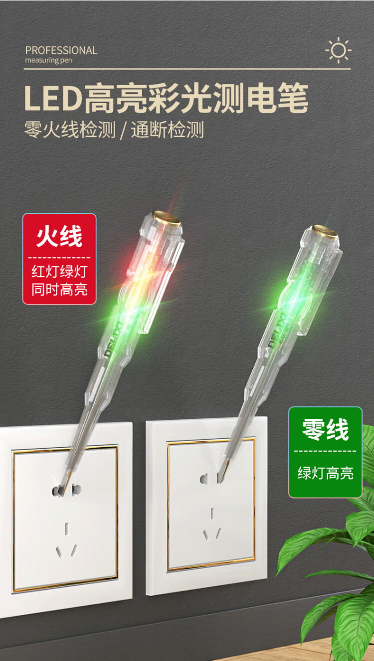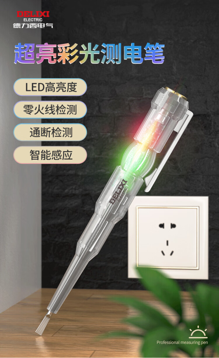 Delixi electric pen electrician's special high-brightness color light electric test pen for detecting wire breakage intelligent induction electric test on-off test pen