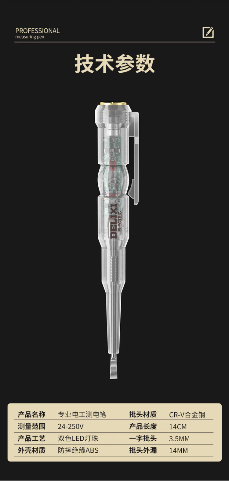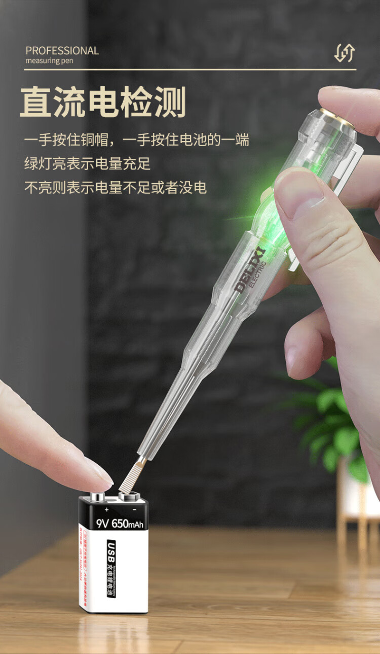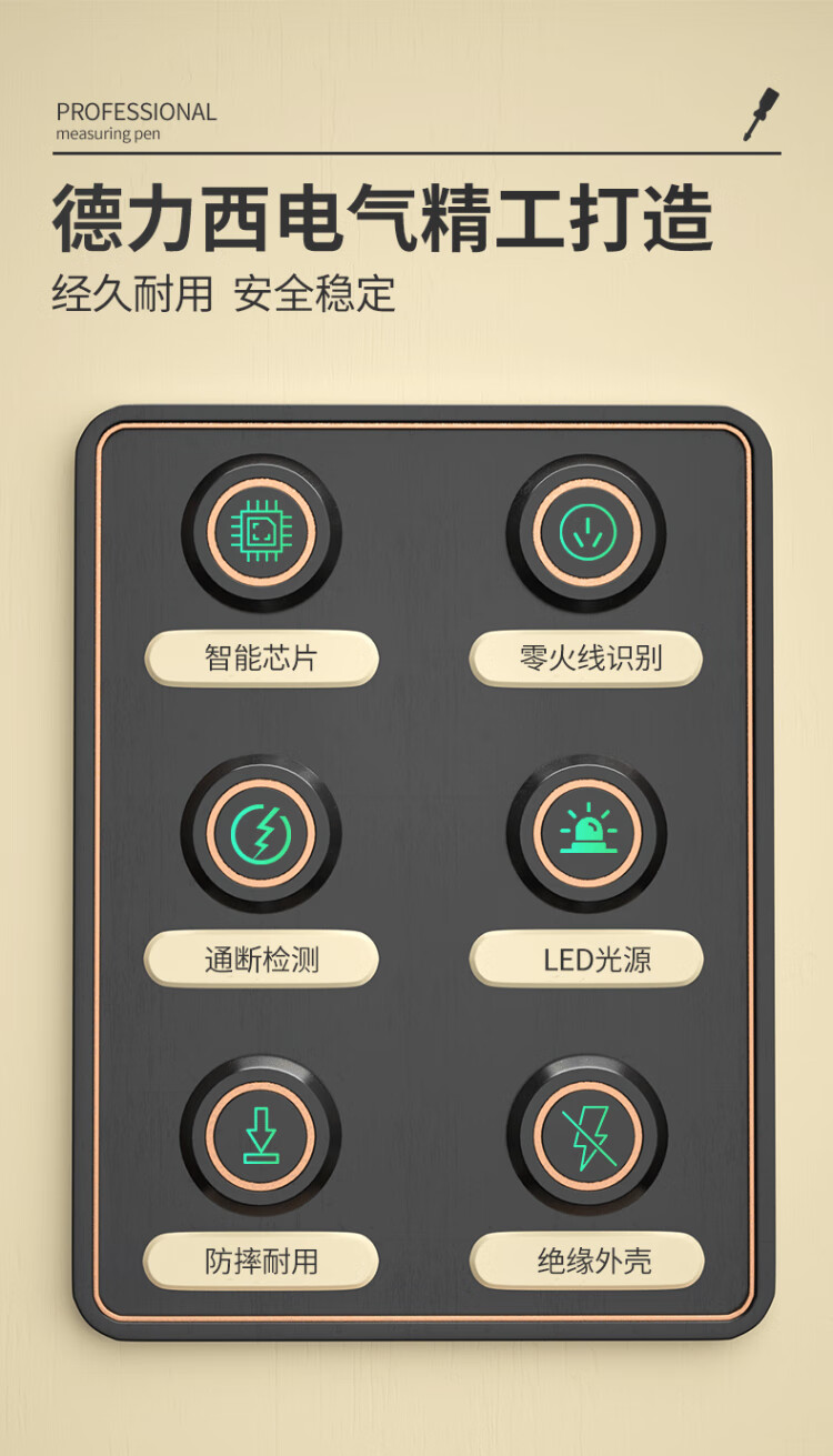 Delixi electric pen electrician's special high-brightness color light electric test pen for detecting wire breakage intelligent induction electric test on-off test pen