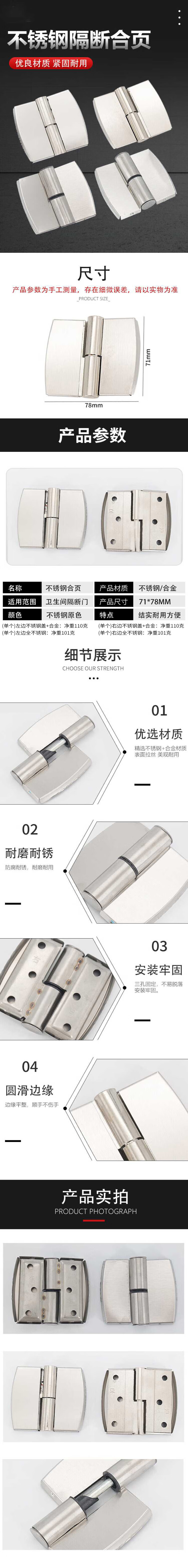 Jinguluo stainless steel bathroom partition accessories, toilet self-closing door removable hinges, 2 pieces, all stainless steel on the right side