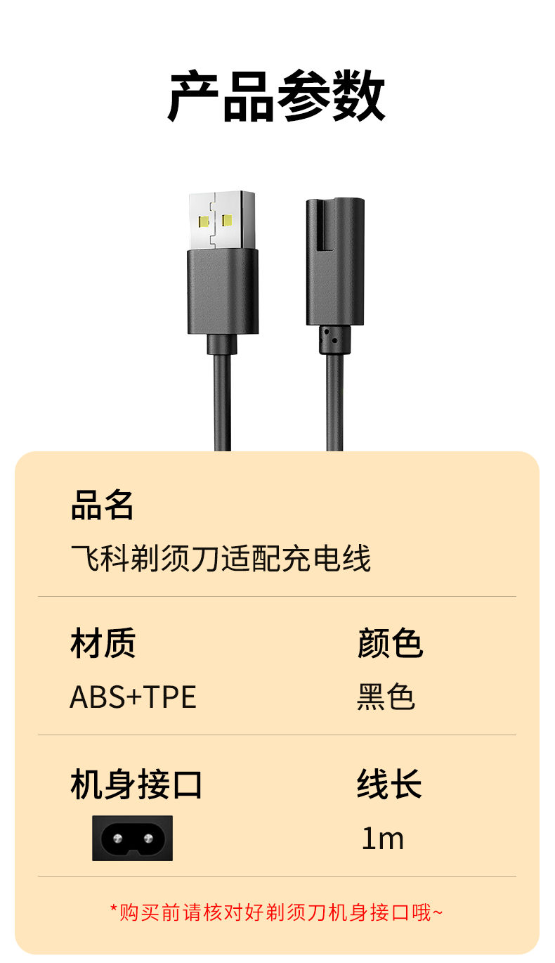 Masentek suitable for Feiko shaver charging cable fs339/366/372/318/373/375/377/807/808/310/879/313 vRui shaver charger
