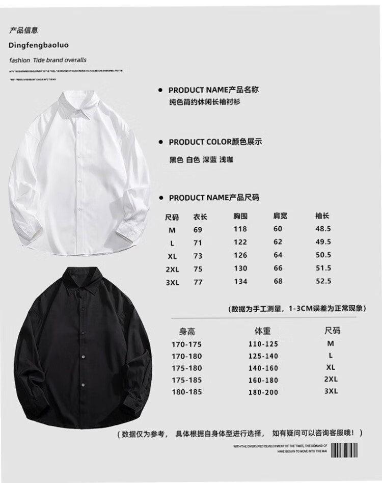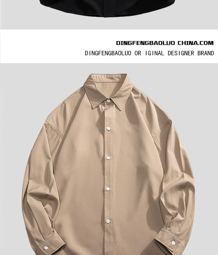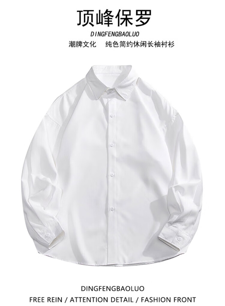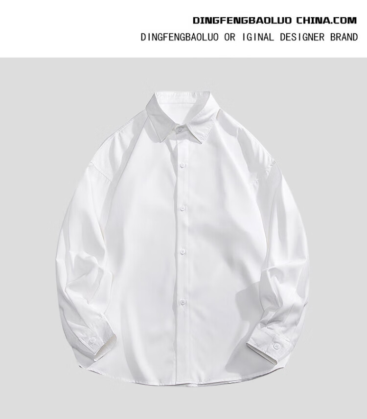 Dingfengbaoluo long-sleeved shirt men's spring and autumn solid color casual shirt trendy loose top 7304 white 2XL