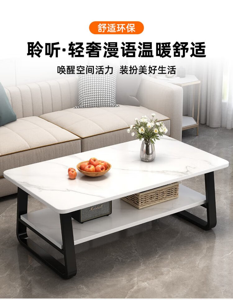 Shanshan wood art coffee table living room household double-layer light luxury coffee table small apartment modern simple small tea table multi-functional sofa side table
