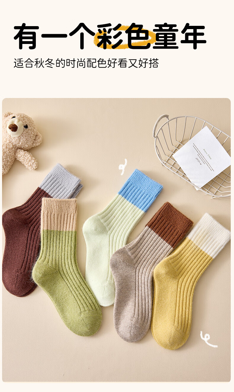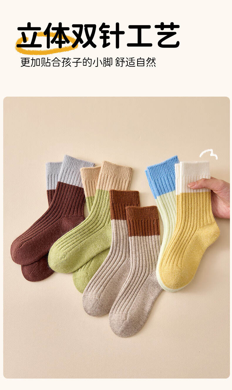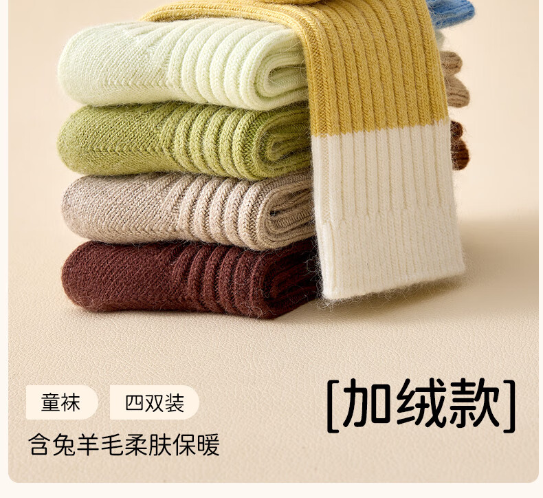 Modal 4 pairs of children's socks for boys and girls, wool socks for autumn and winter, velvet warm thick socks for teenagers, middle and large children, long tube