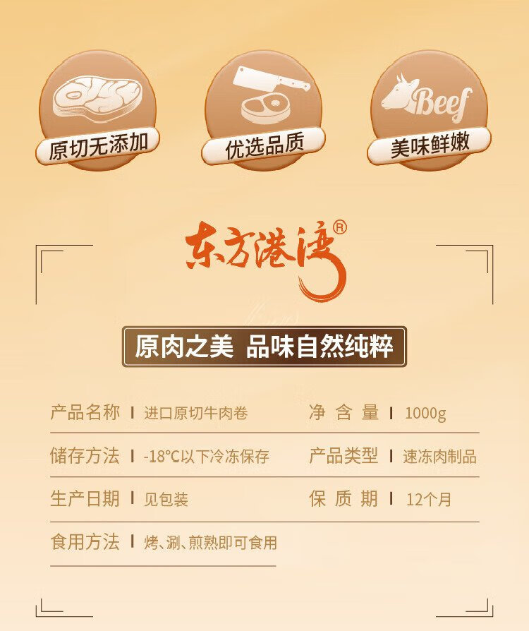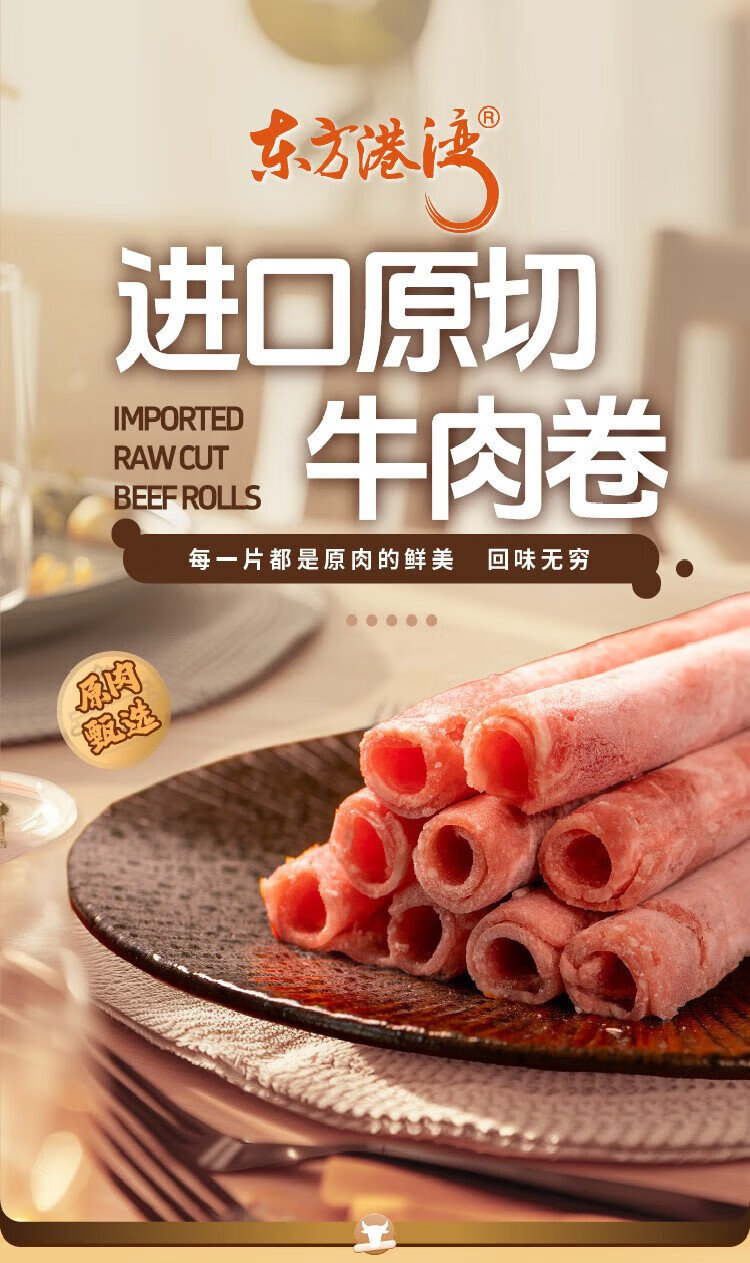 Oriental Harbor Imported Original Cut Beef Rolls Net Weight 2Jin Jin is equal to 0.5kg Beef Grain-fed Fatty Beef Rolls Hot Pot Ingredients BBQ Meat Ingredients 1kg