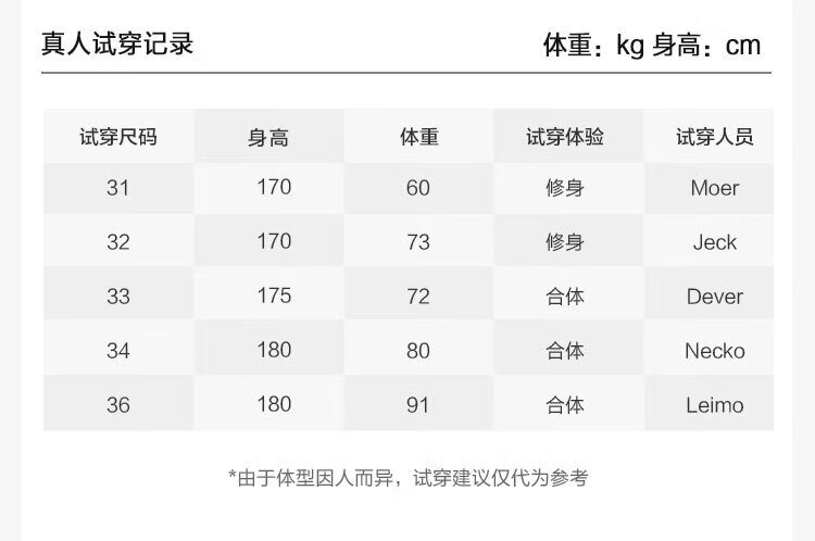 China (cm) 165 / 88-90 170 / 96-98 175 / 108-110 180 / 118-122 185 / 126-130