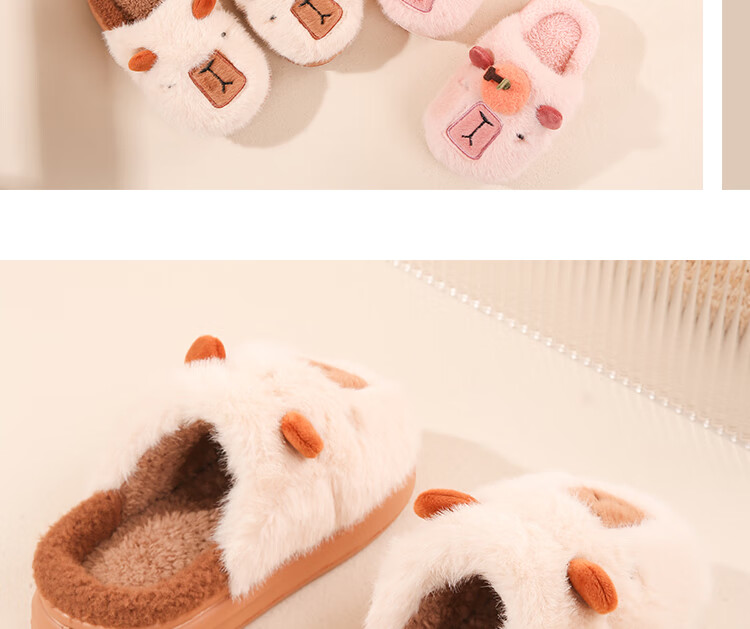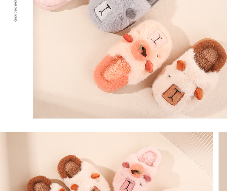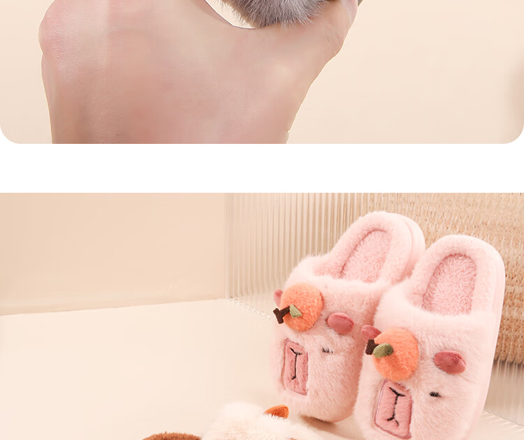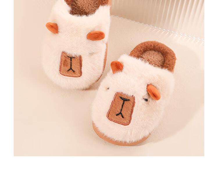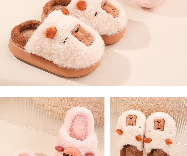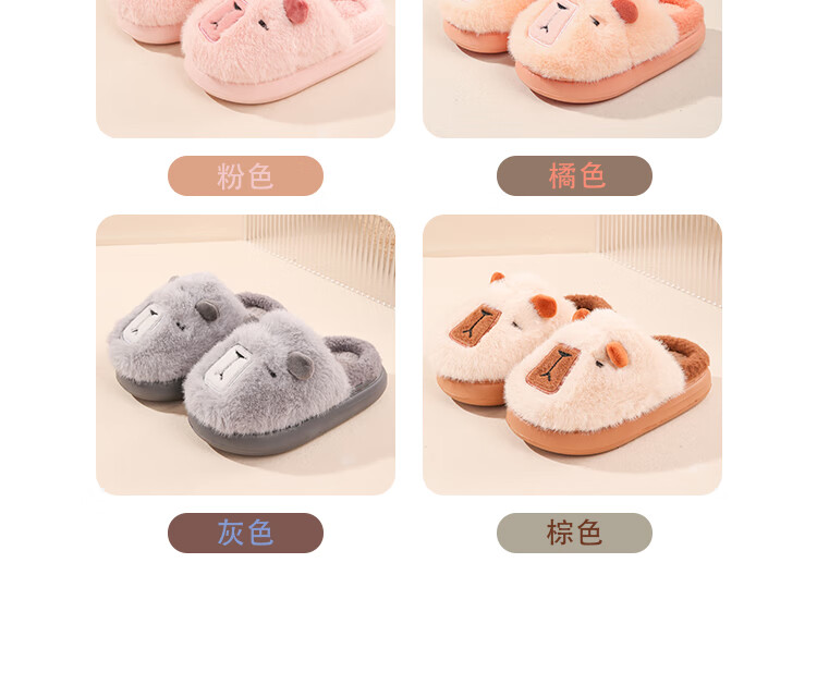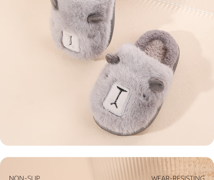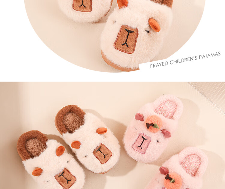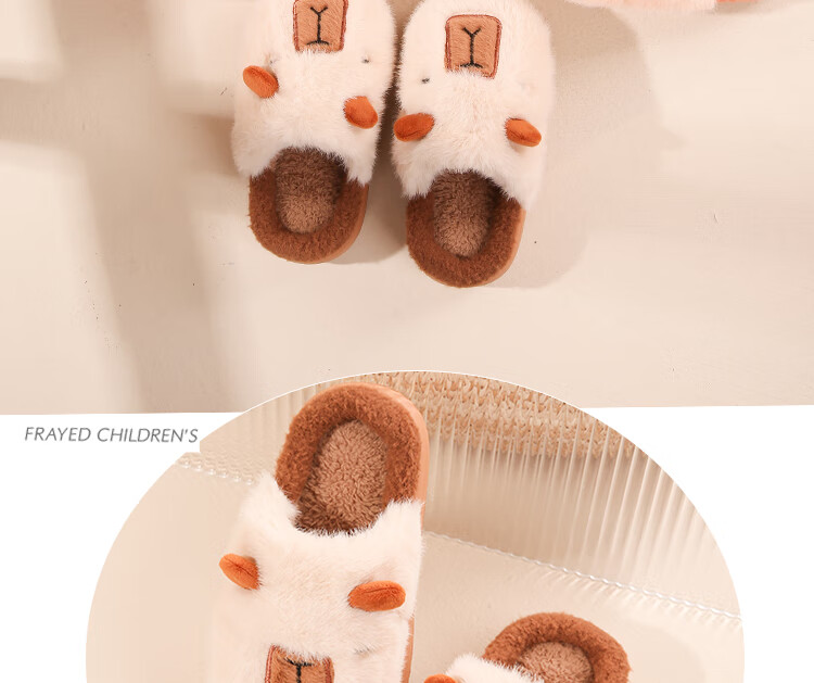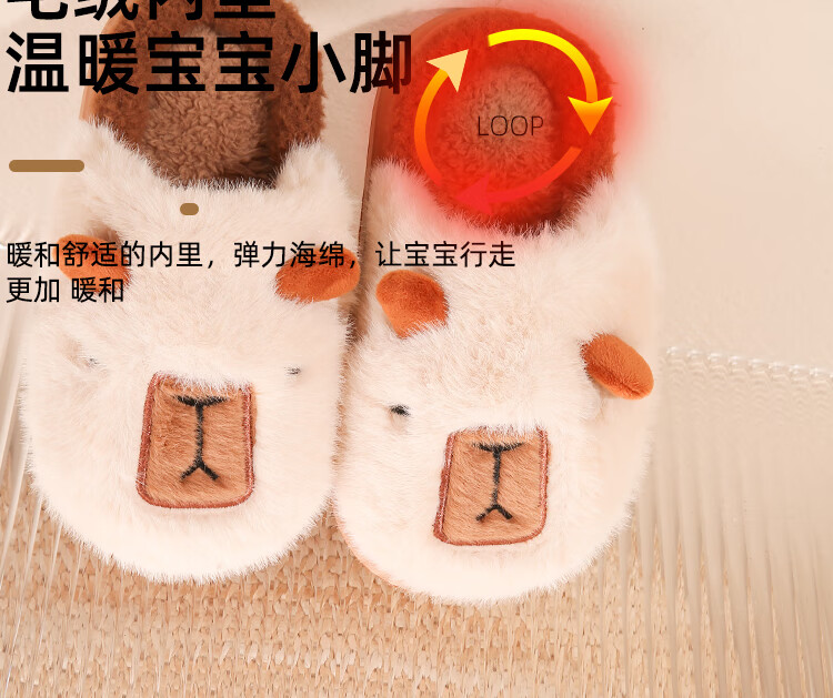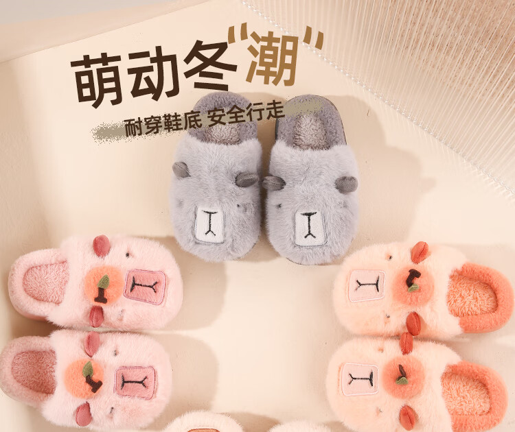 LA CHAPELLE HOMME Men's and Women's Children's Indoor and Outdoor Home Warm Soft Soled Cute Plush Cotton Slippers Orange 28-29