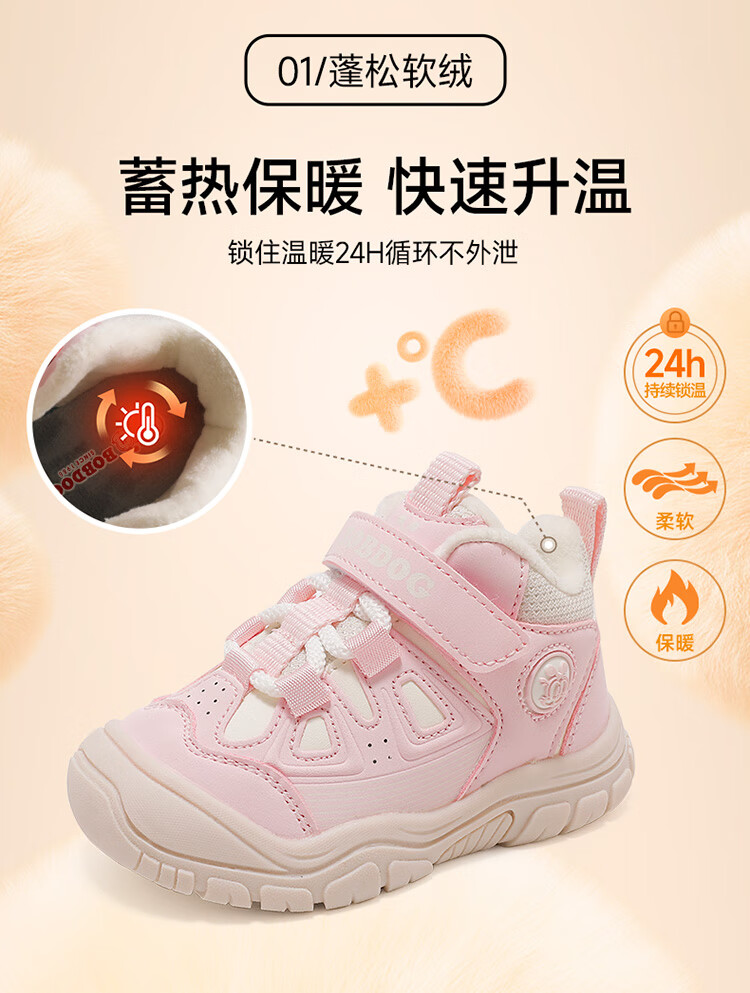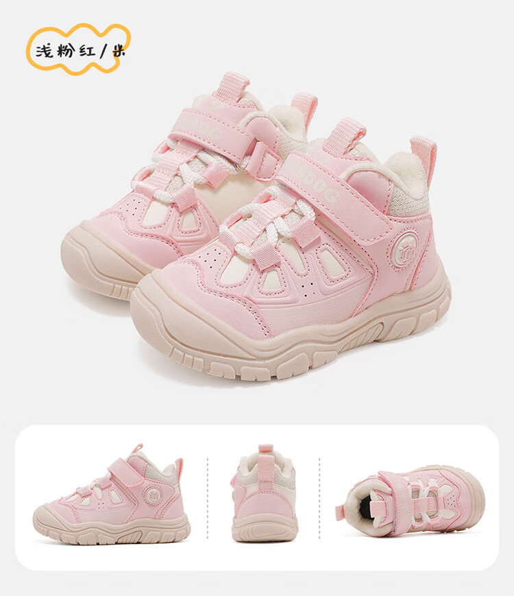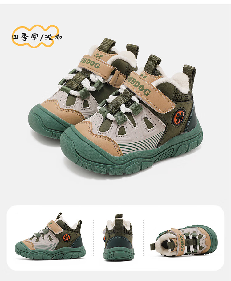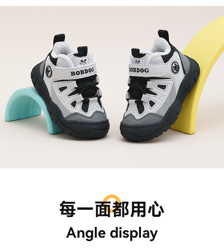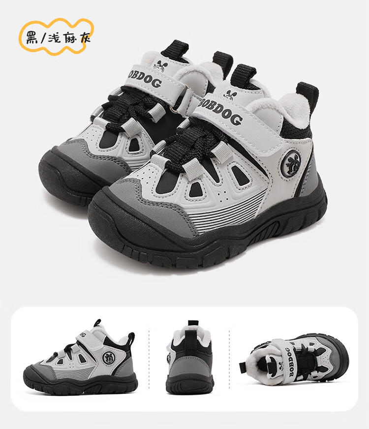 Babudou children's shoes winter warm children's sports shoes plus velvet and thickened boys' toddler shoes 106345047 black/light hemp gray 26