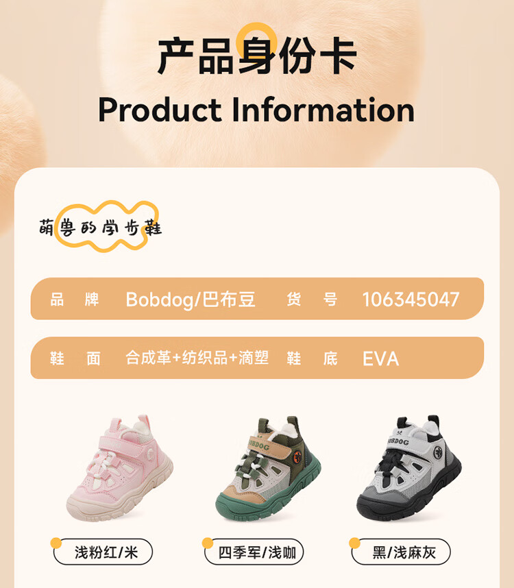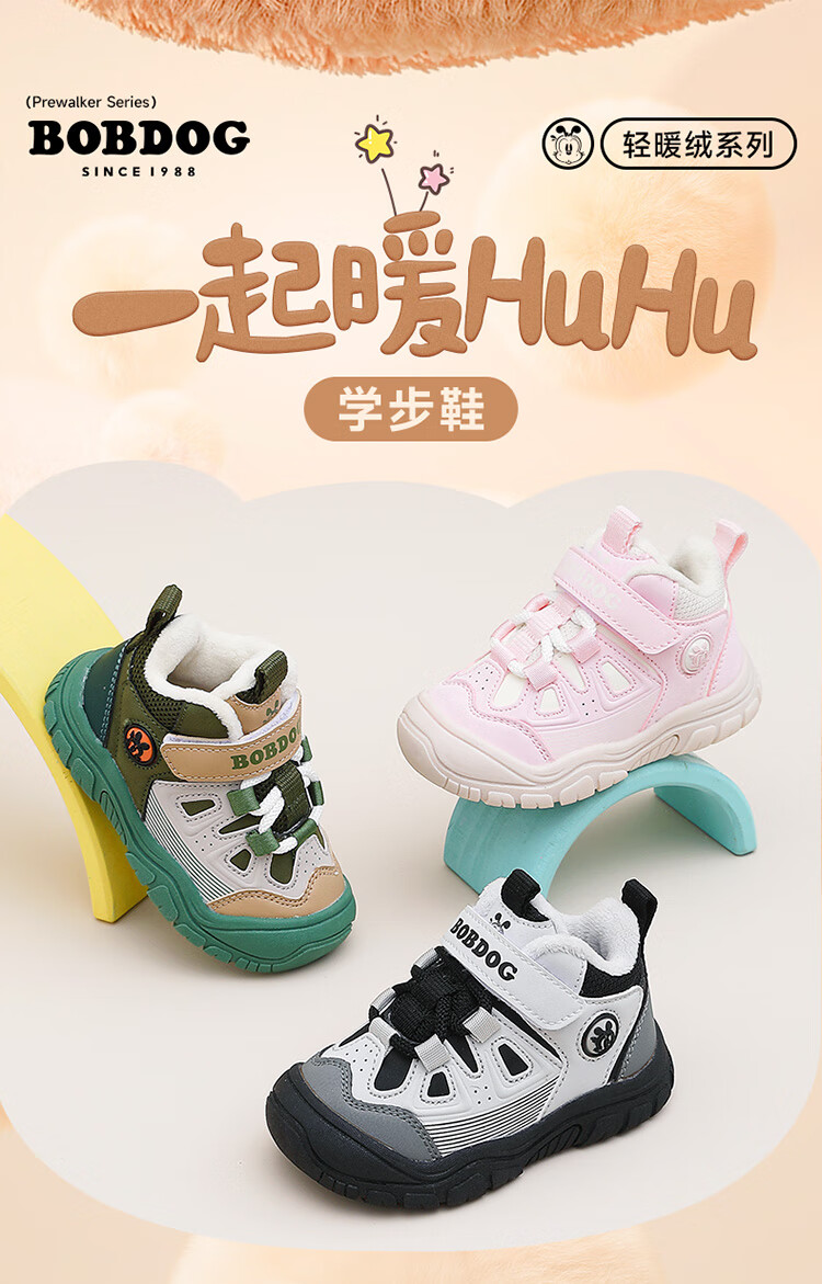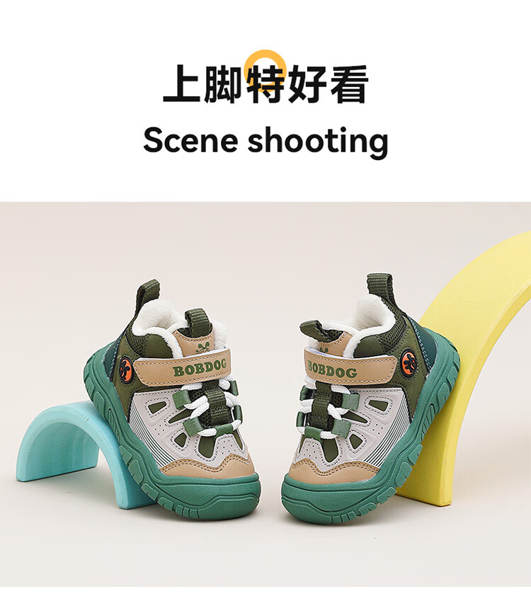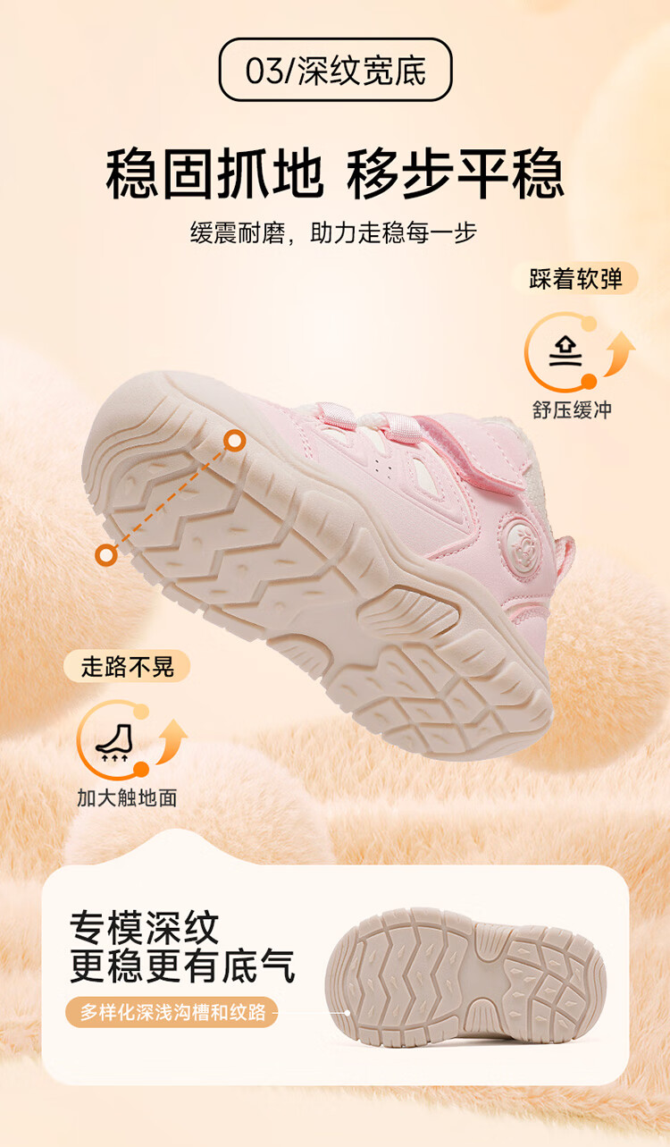 Babudou children's shoes winter warm children's sports shoes plus velvet and thickened boys' toddler shoes 106345047 black/light hemp gray 26