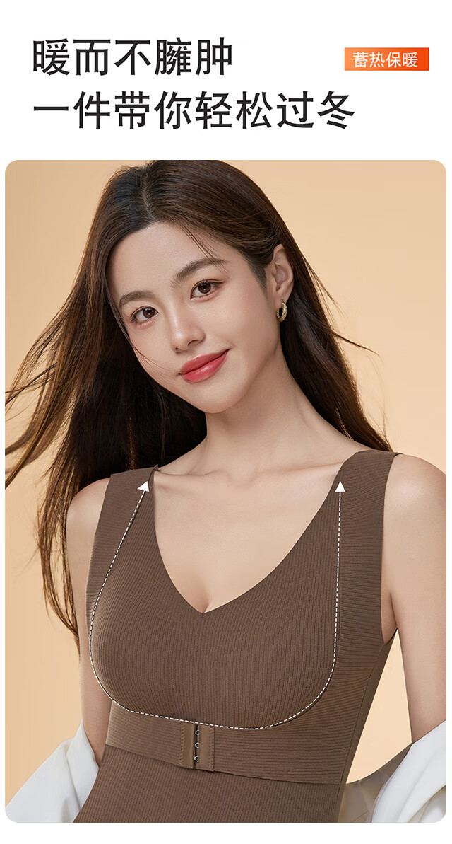 Xue Qianman Women's Thermal Vest Women's Autumn and Winter With Breast Pad Front Button Gathering Body Shaping Bottoming Seamless Heating Thermal Underwear