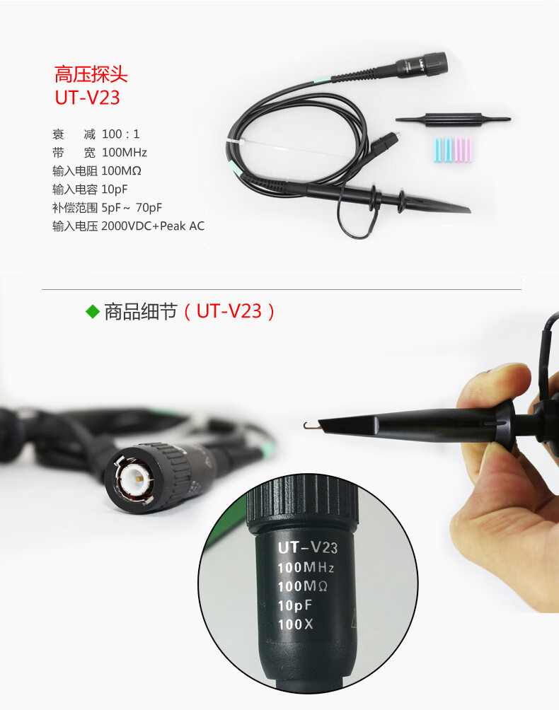 Unilide UT-V23 oscilloscope high voltage probe probe 100 1 100M can measure 2000V high voltage