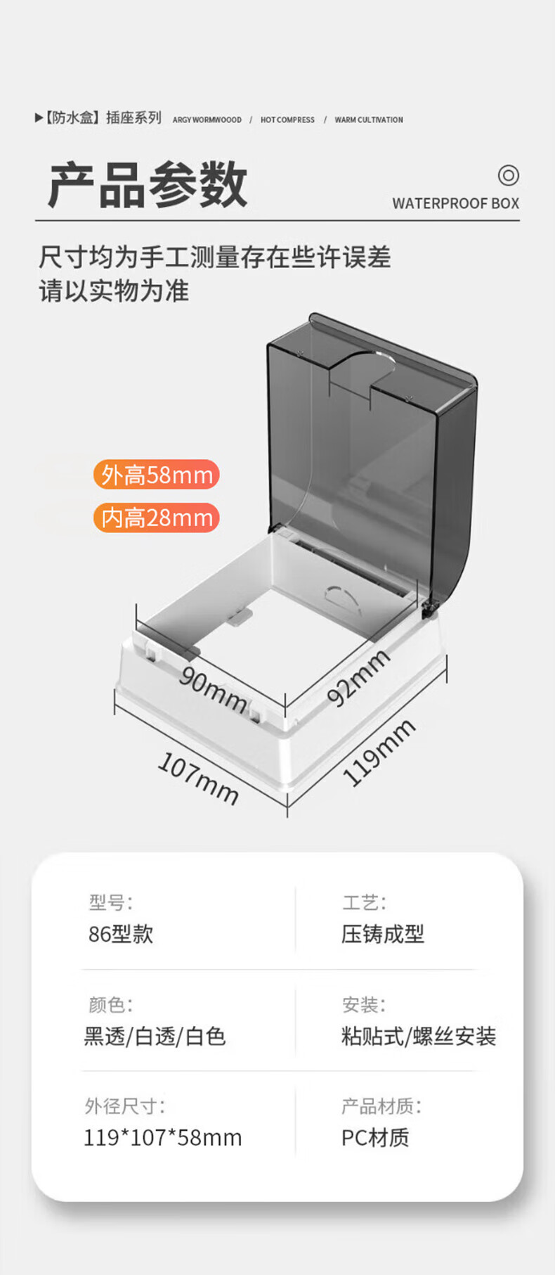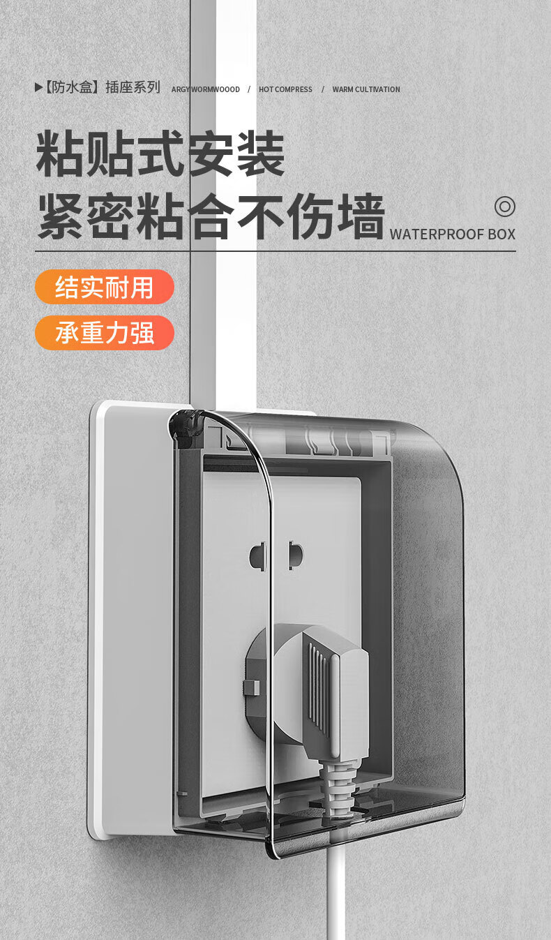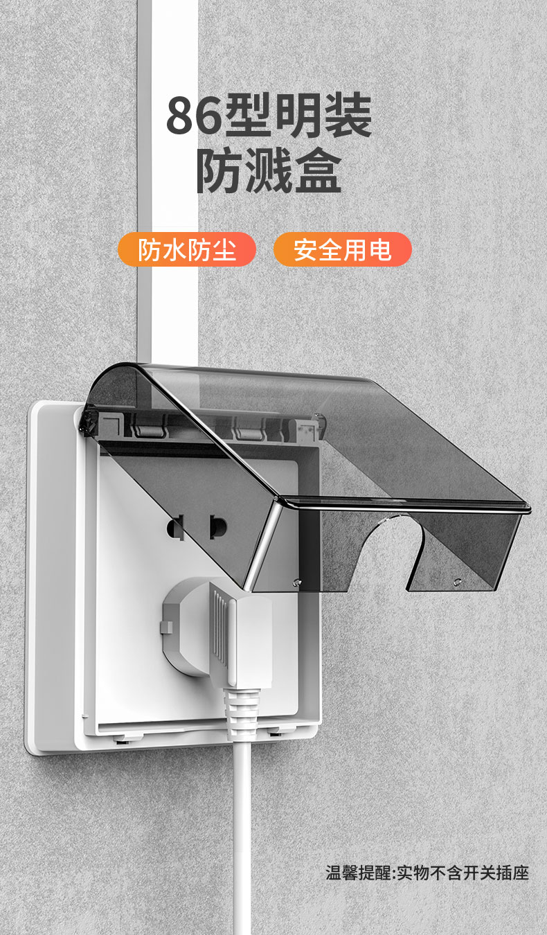International Electrician Type 86 surface-mounted self-adhesive socket bathroom toilet waterproof cover splash-proof box power socket waterproof box protective cover surface-mounted waterproof box surface-mounted black transparent